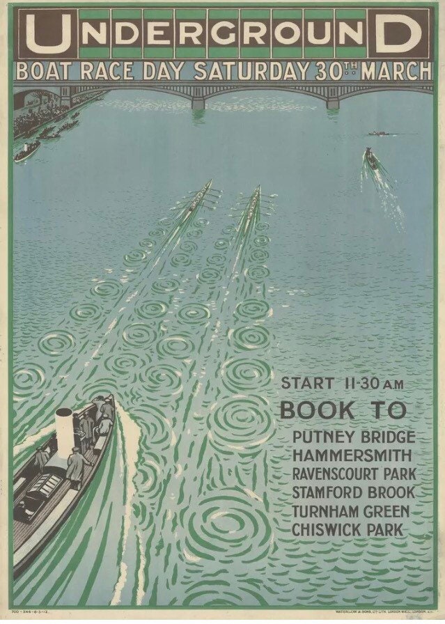 High quality reprint of an original artwork - 1913 London boat race advertising poster. Stunning image.