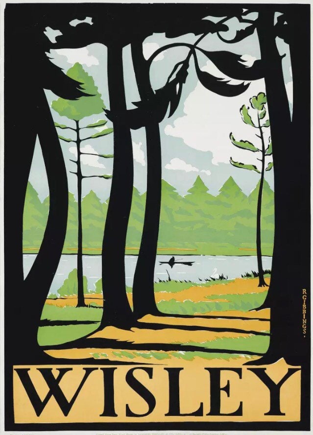 High quality reprint of an original artwork - 1922 Art Deco London transport advertising poster promoting Wisley in the Surrey countryside. Stunning image.