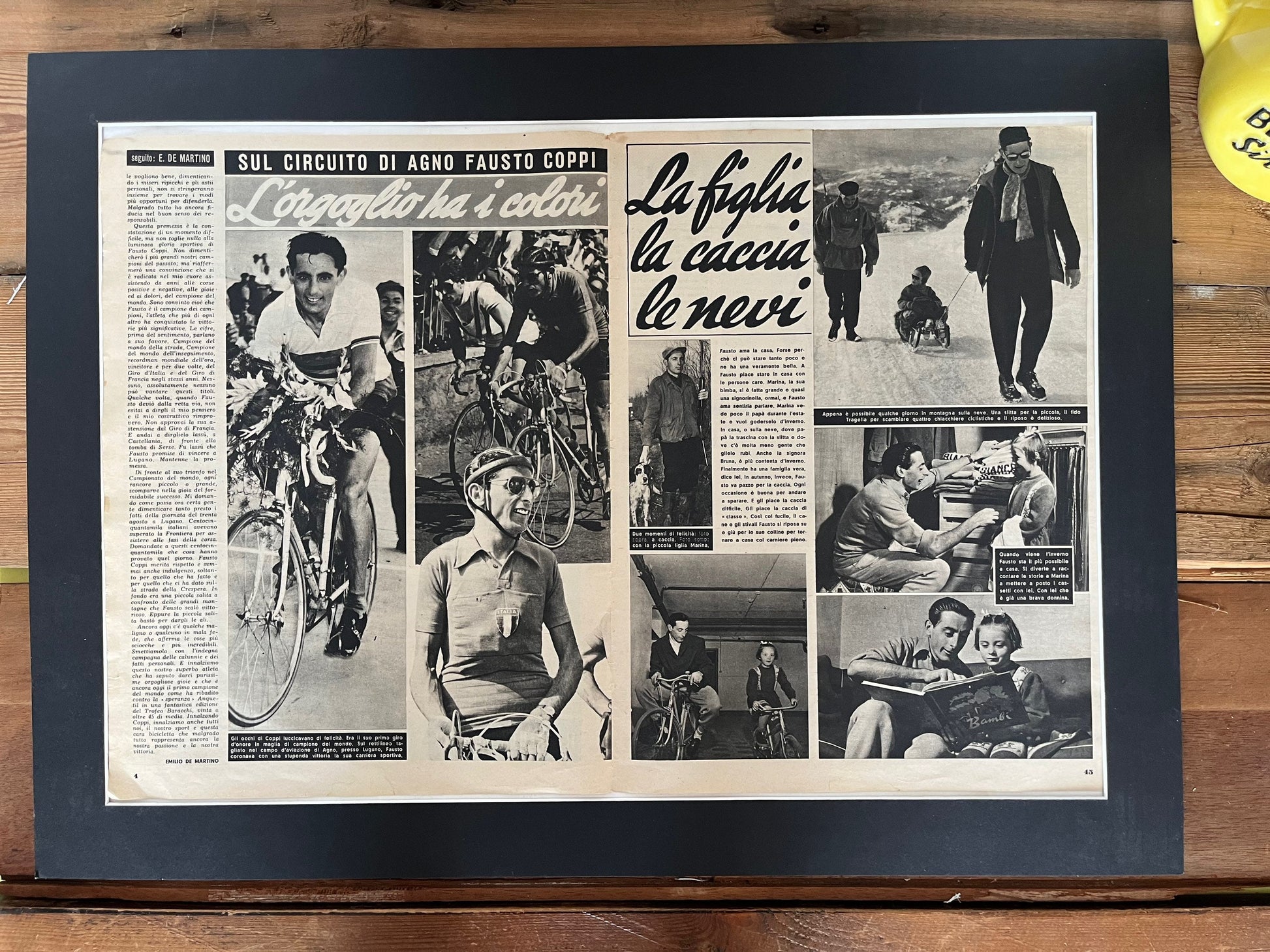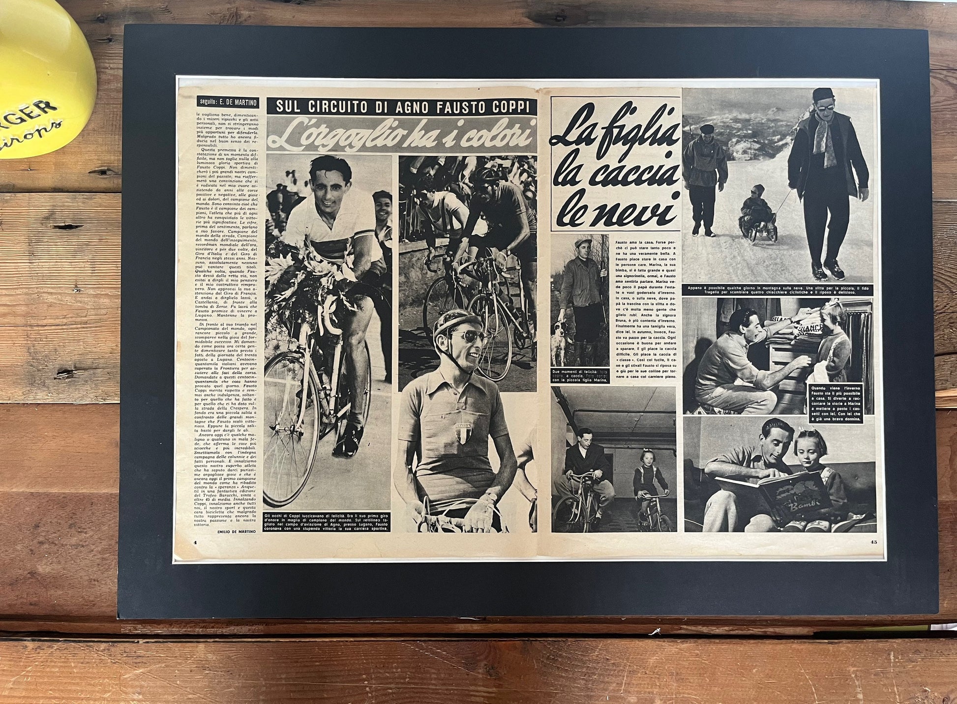 Iconic and very rare Original 1950s cycling magazine feature on cycling legend Fausto Coppi. Would look excellent mounted and framed. A great looking piece of artwork for the lounge or study.