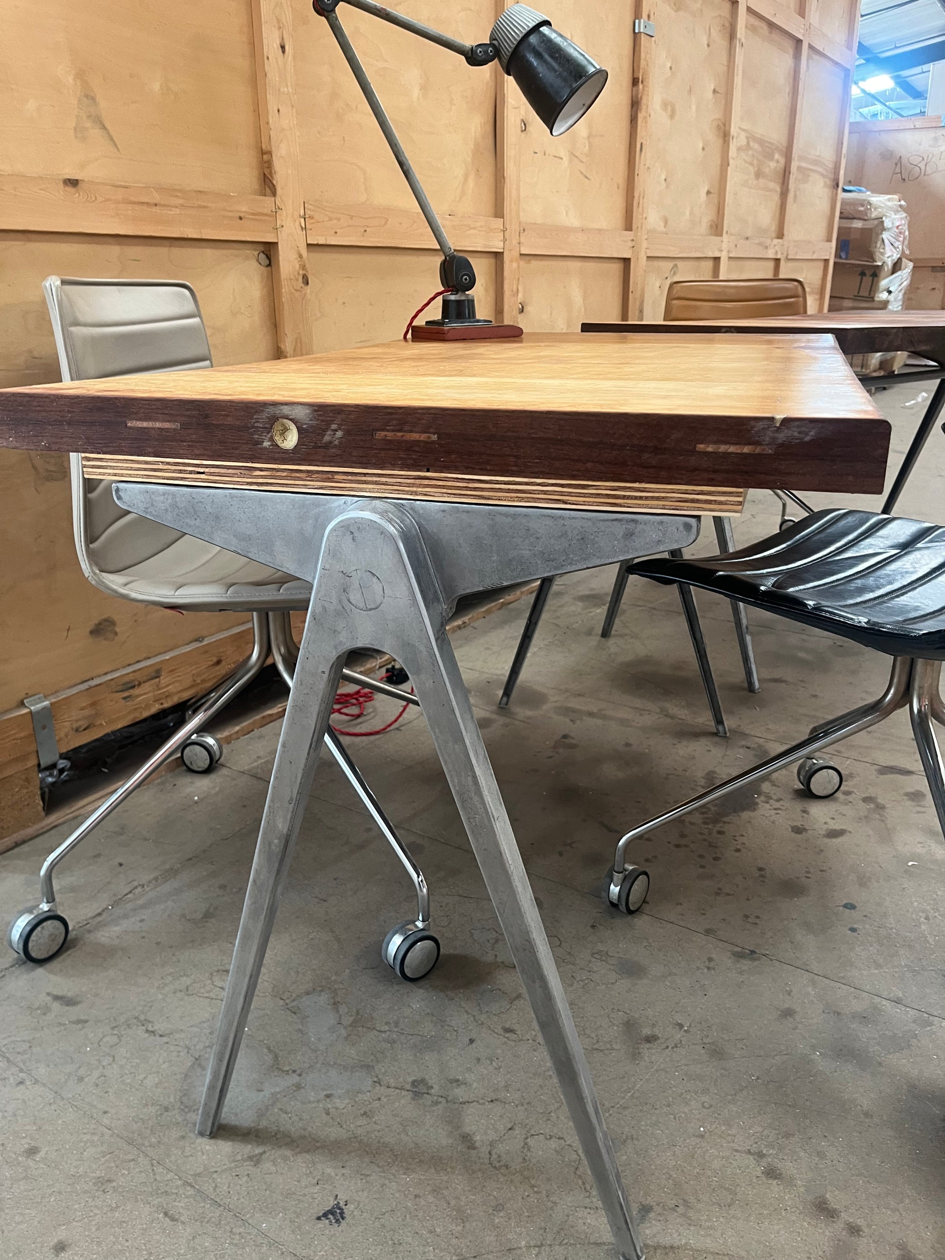 c1950s compass leg desk by James Leonard for Esavian / ESA. A favourite at VH Interior and an absolute icon of British modernist design.