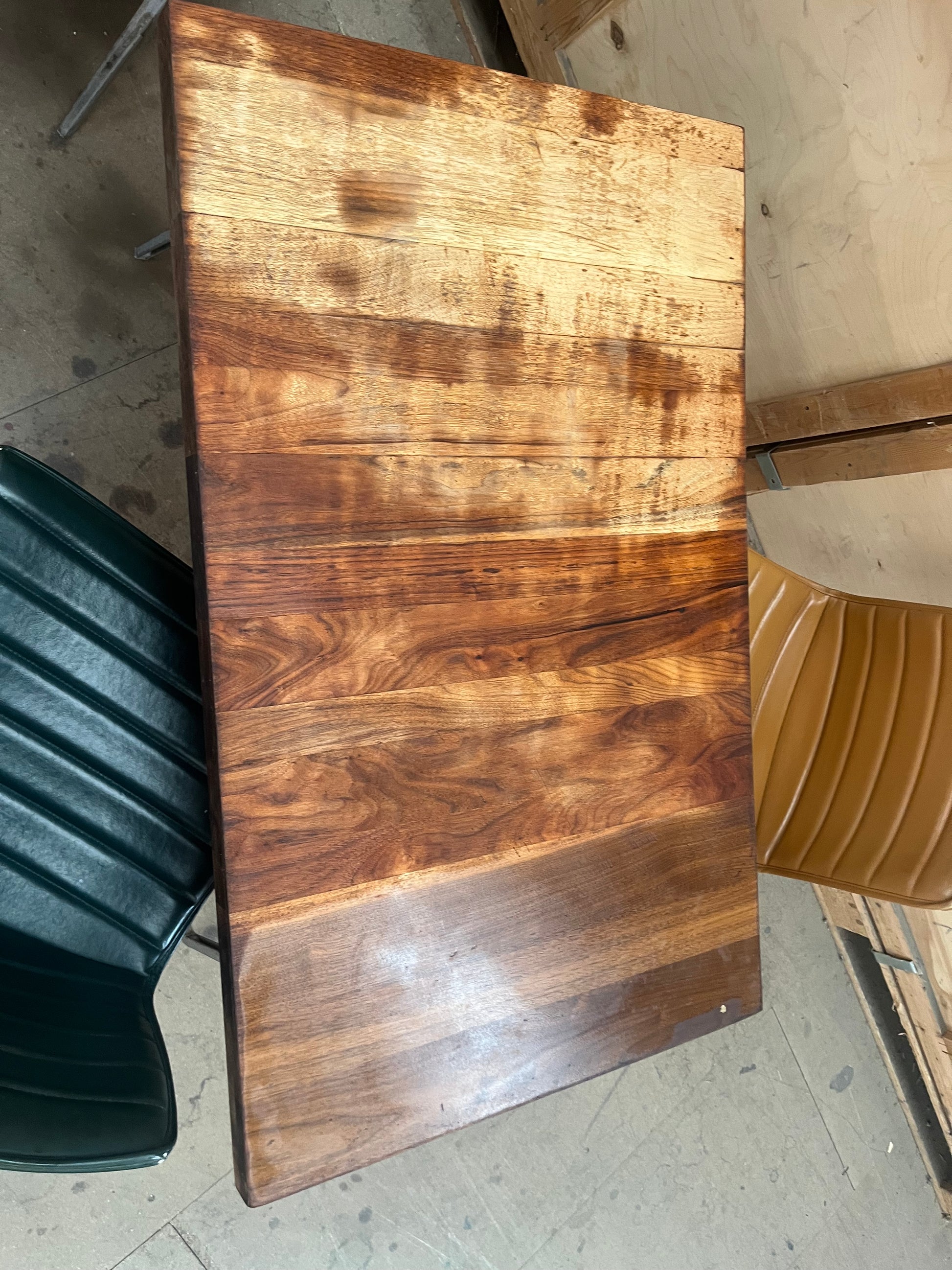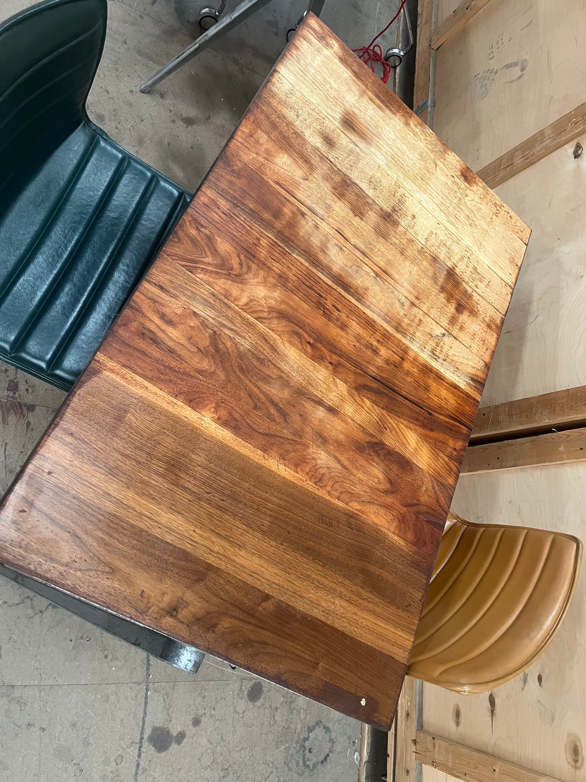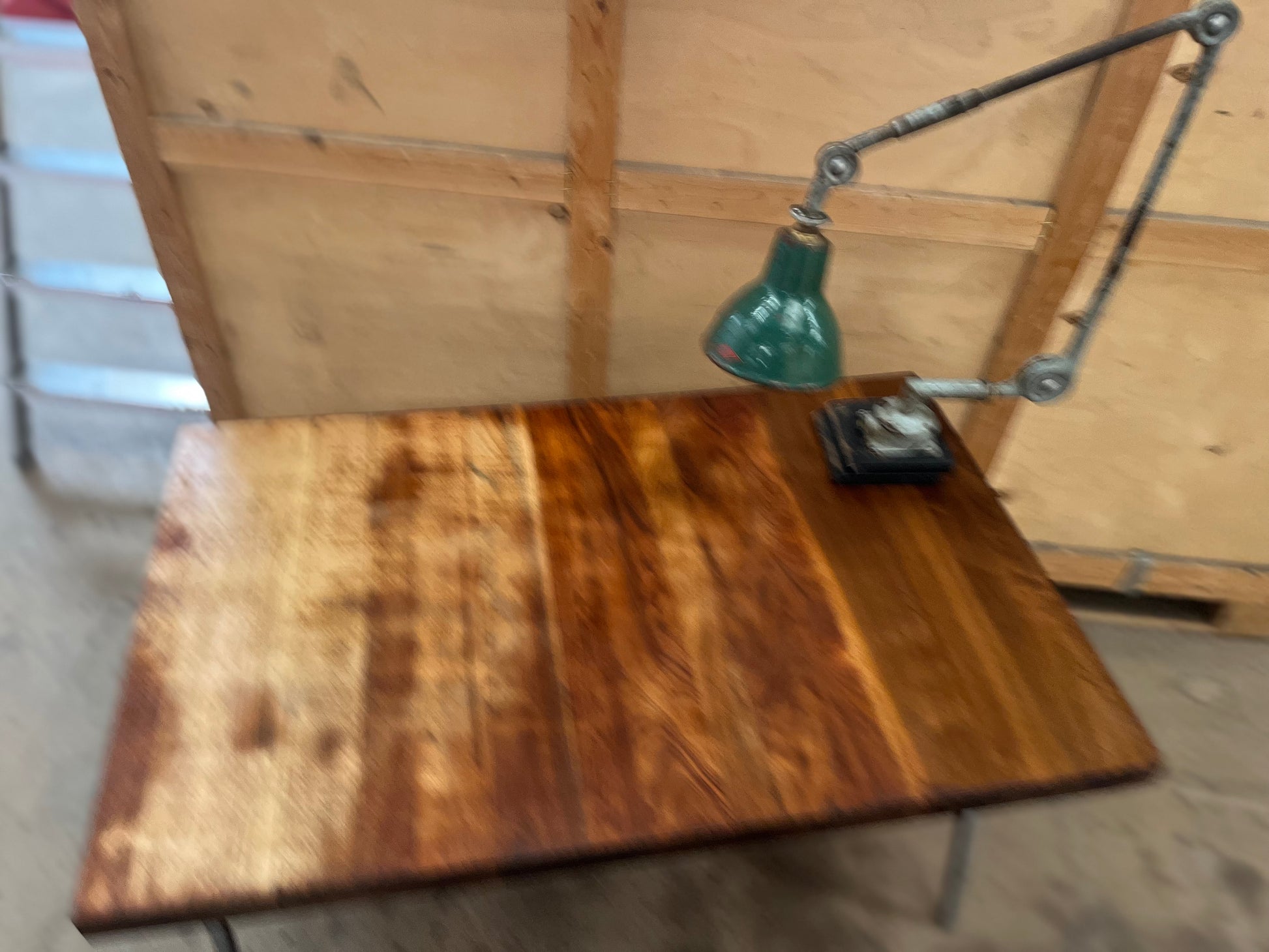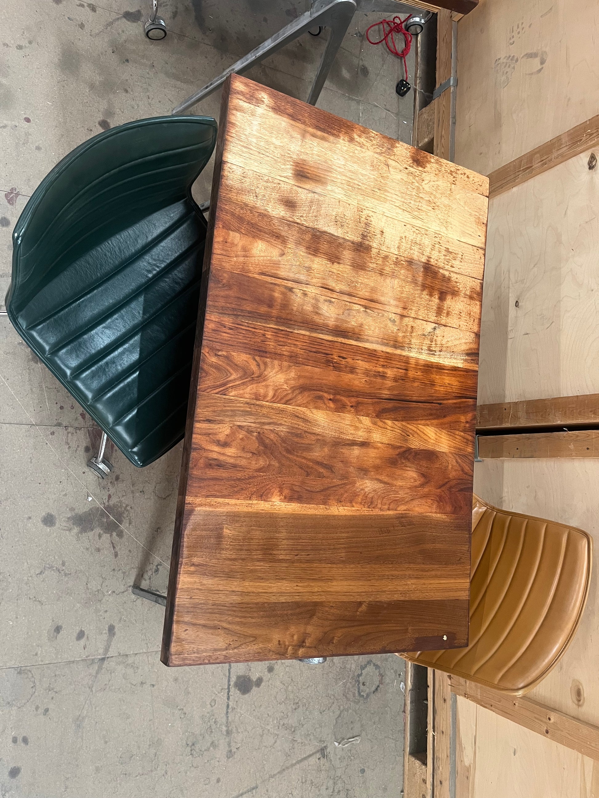 1950s James Leonard compass leg Desk with reclaimed oak top
