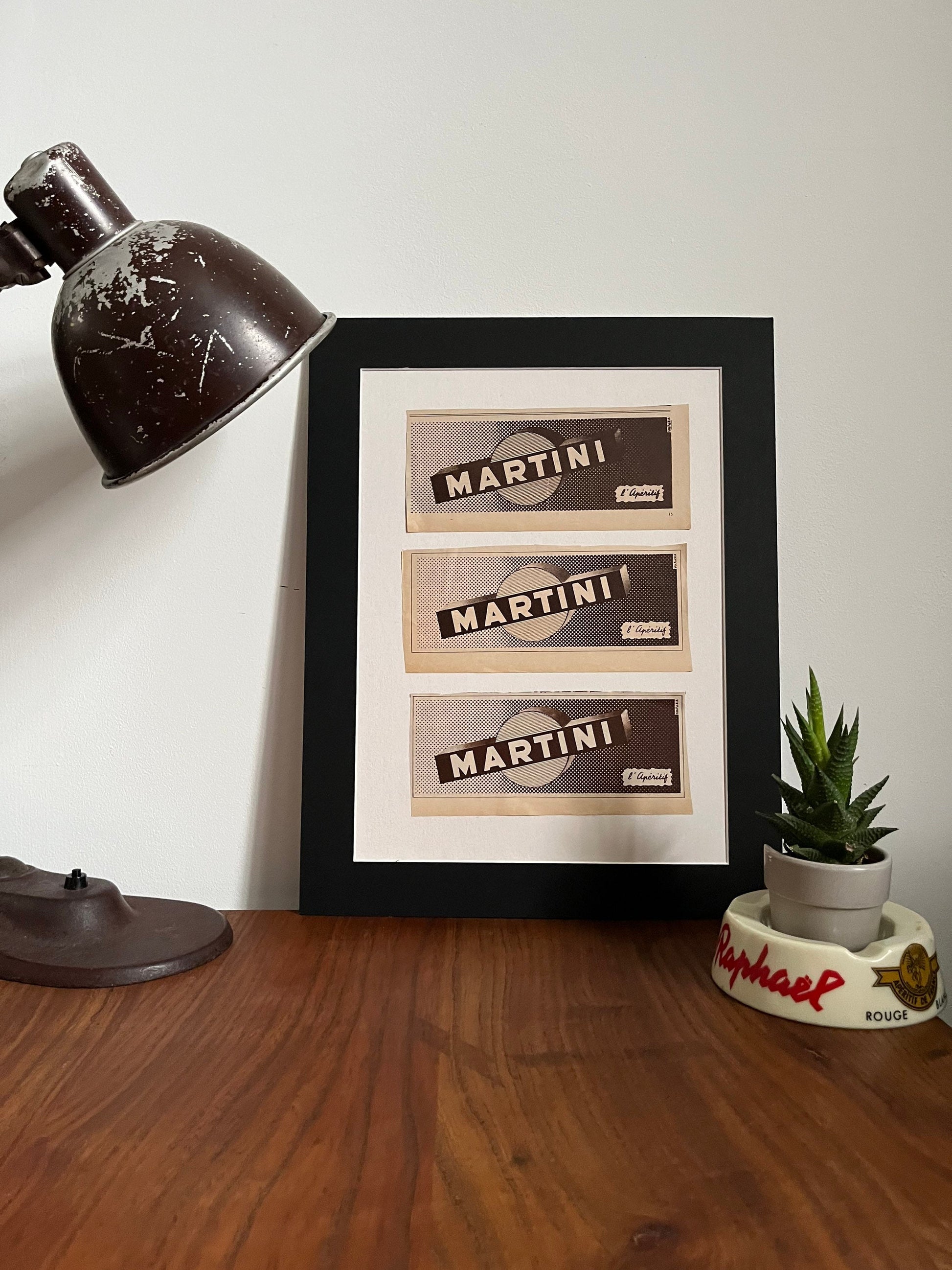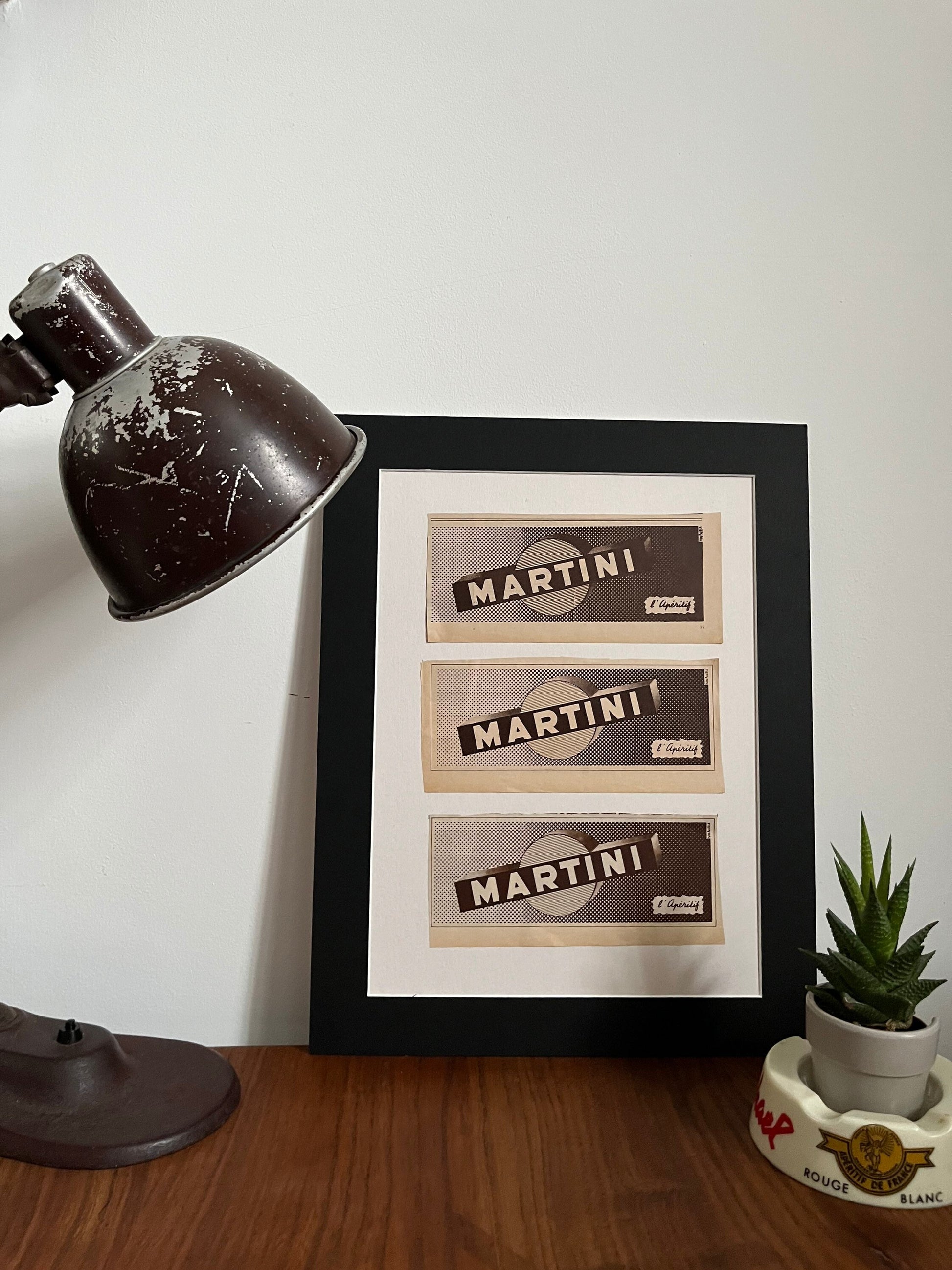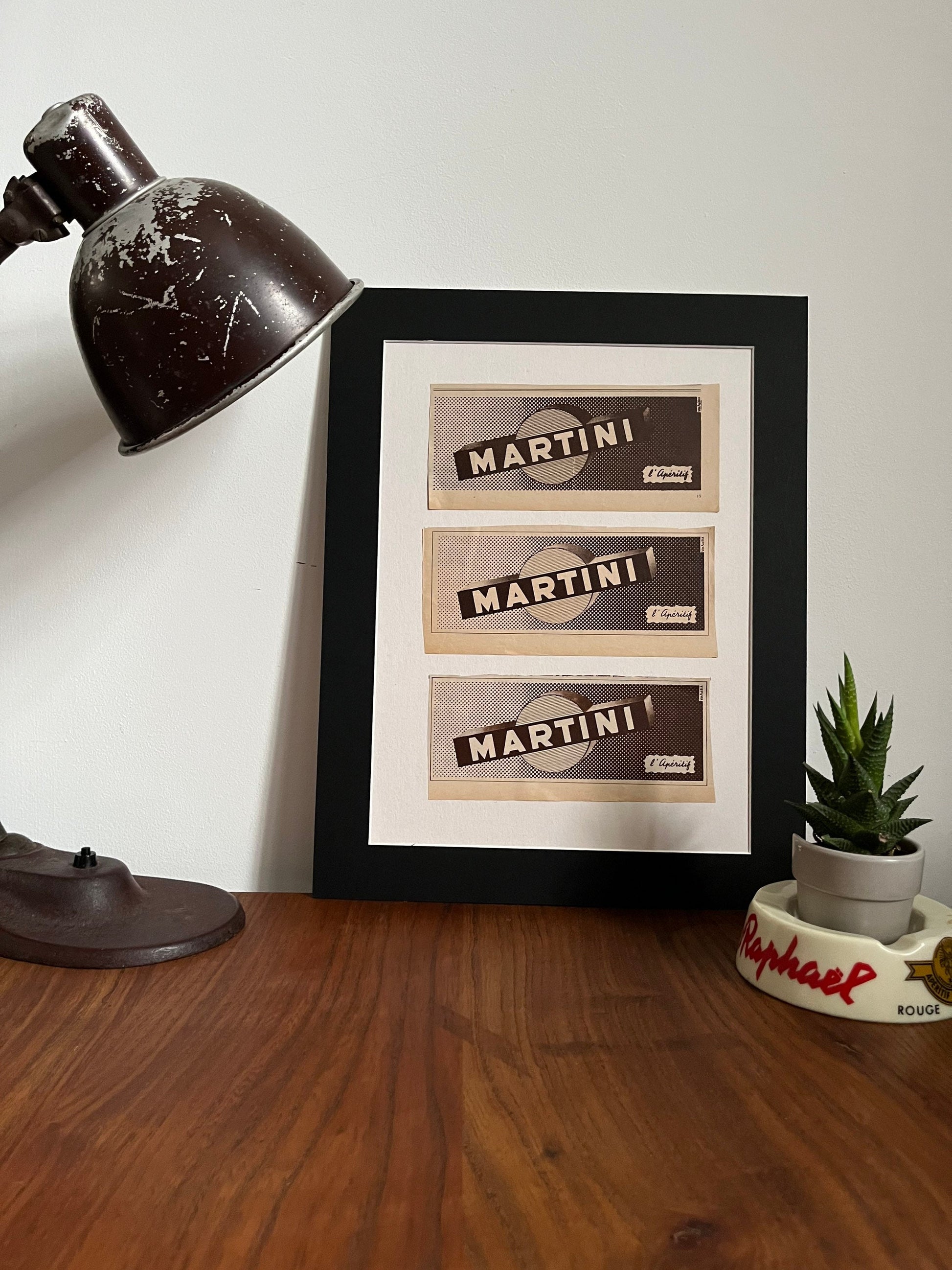 Three original 1950s Martini advertisement logos cut and mounted onto cream card and ready for framing. This is an original print and not a scanned copy.. A superb piece of artwork and an excellent gift