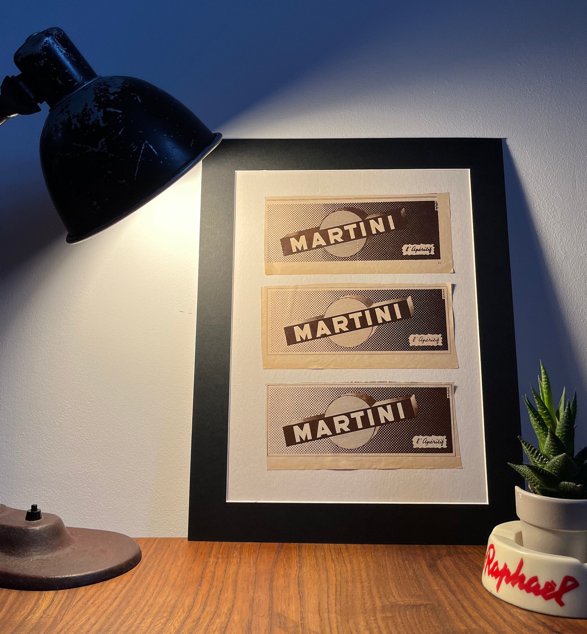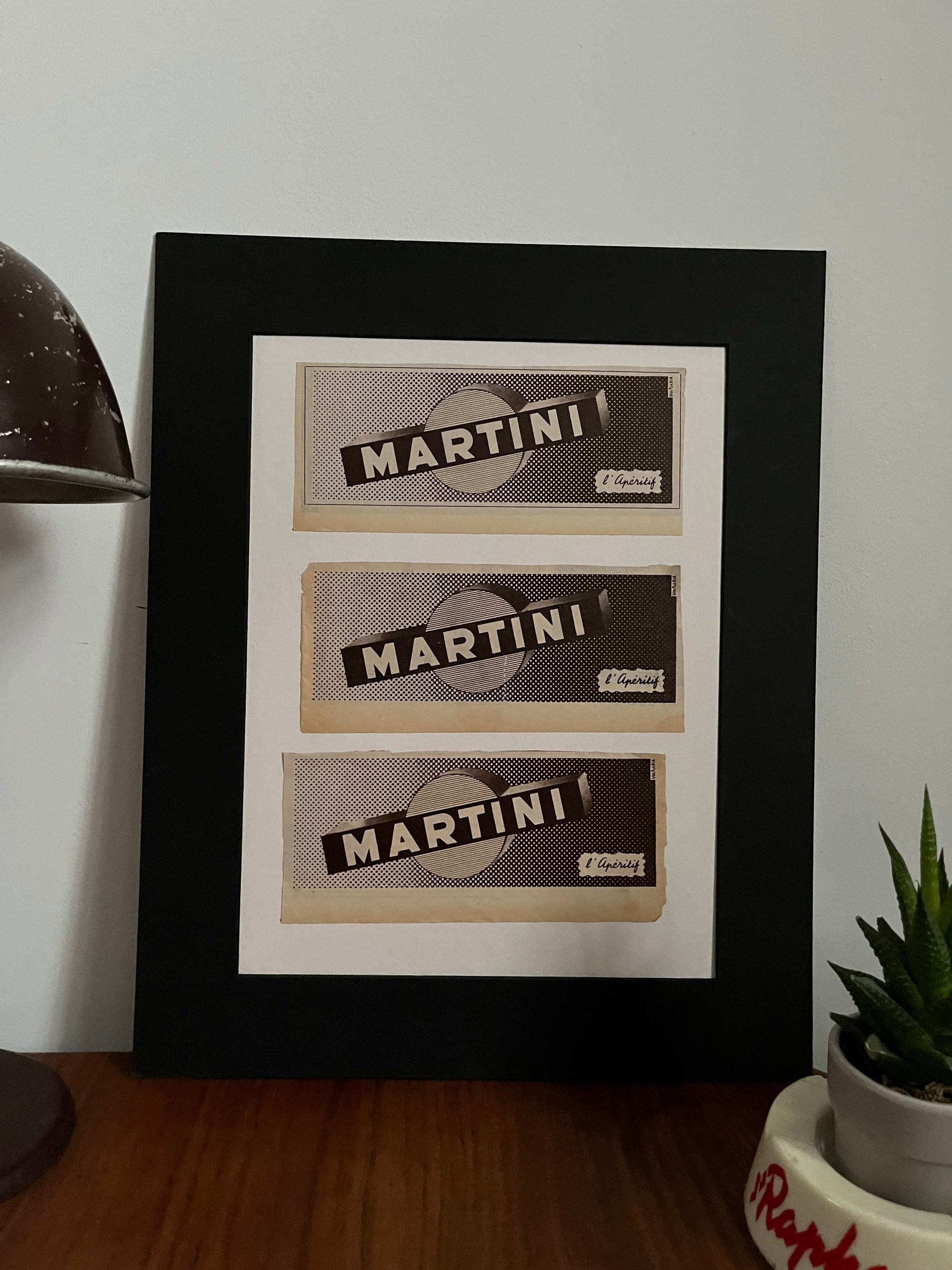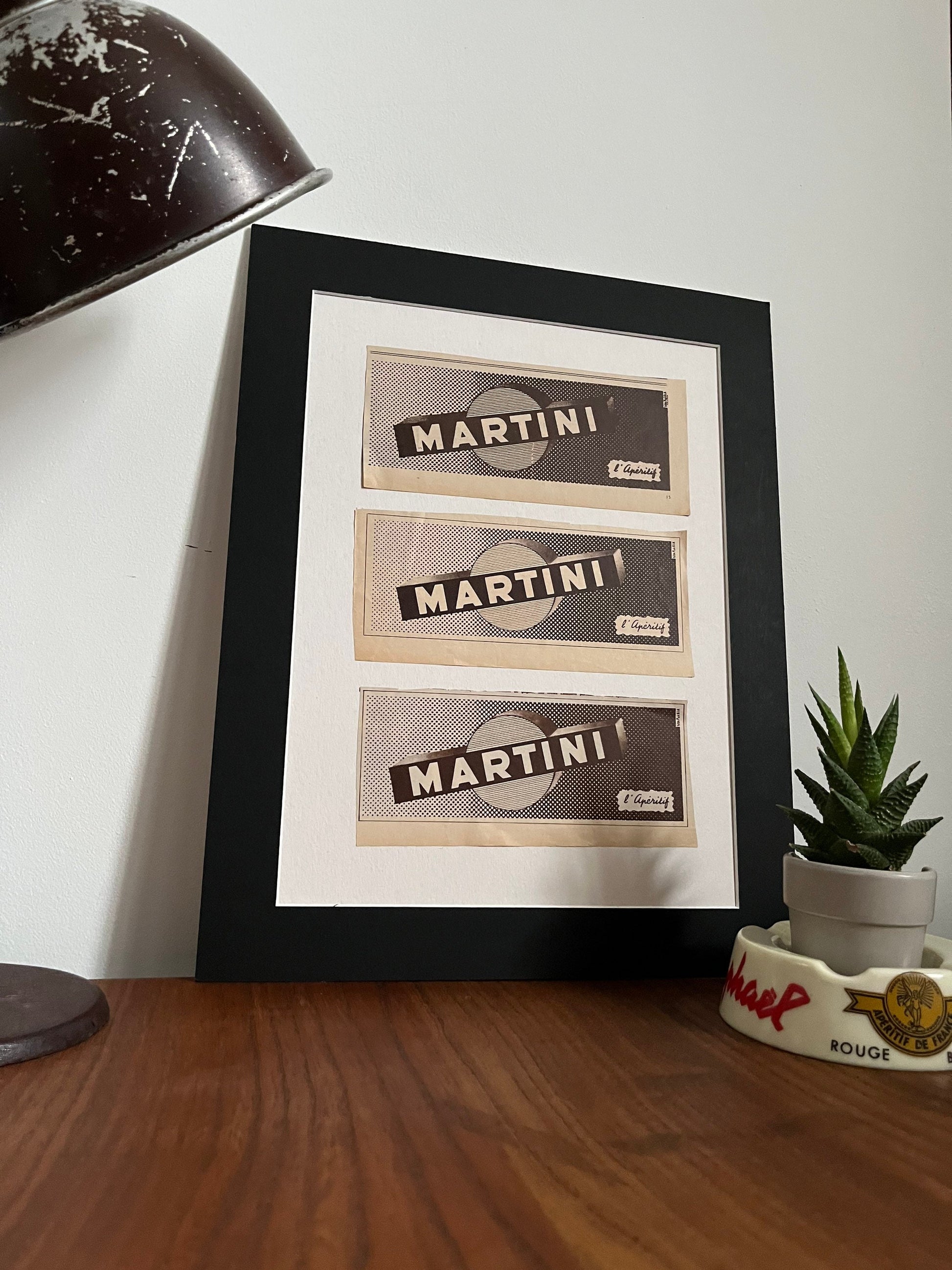 Three original 1950s Martini advertisement logos cut and mounted onto cream card and ready for framing. This is an original print and not a scanned copy.. A superb piece of artwork and an excellent gift