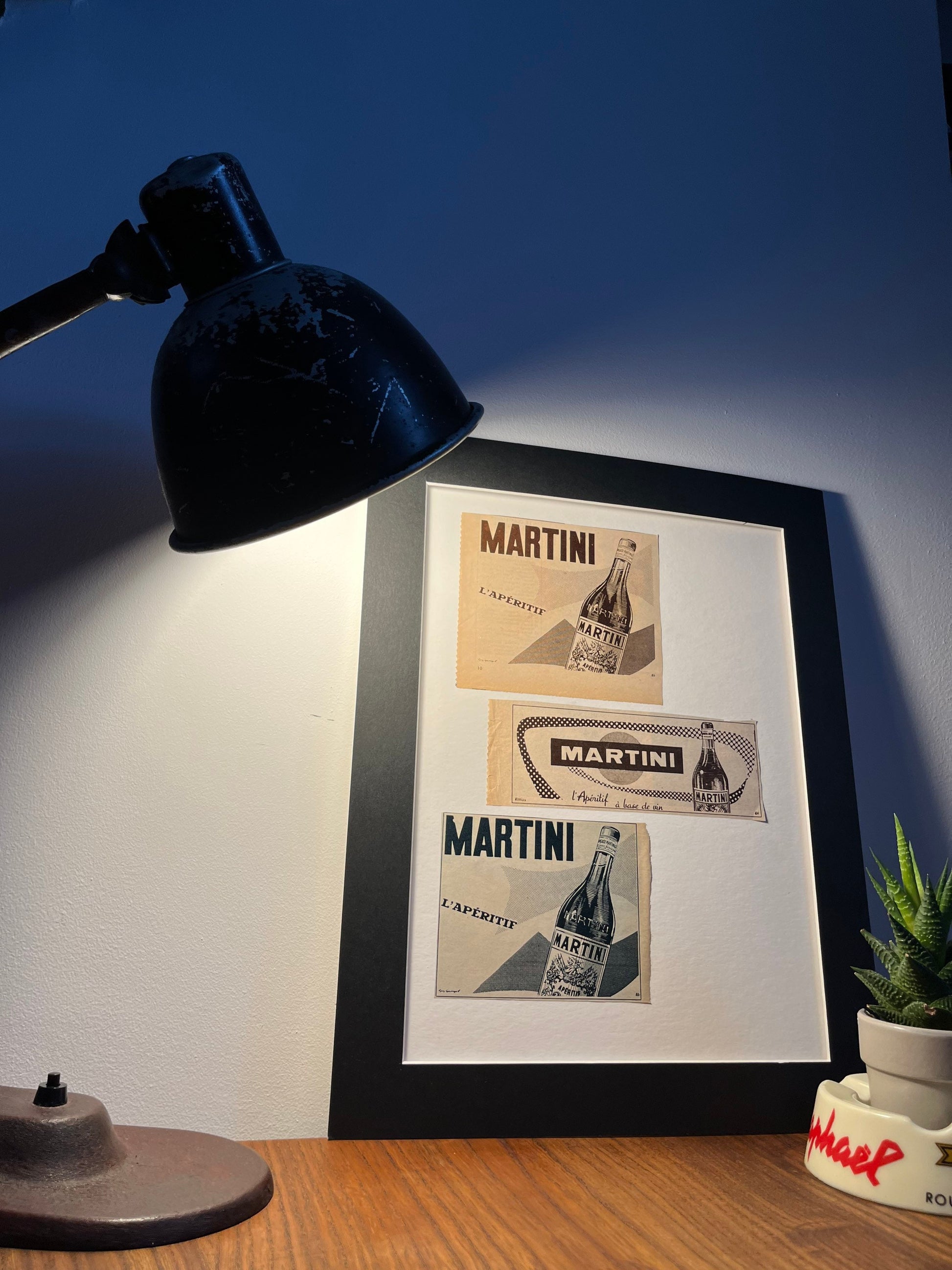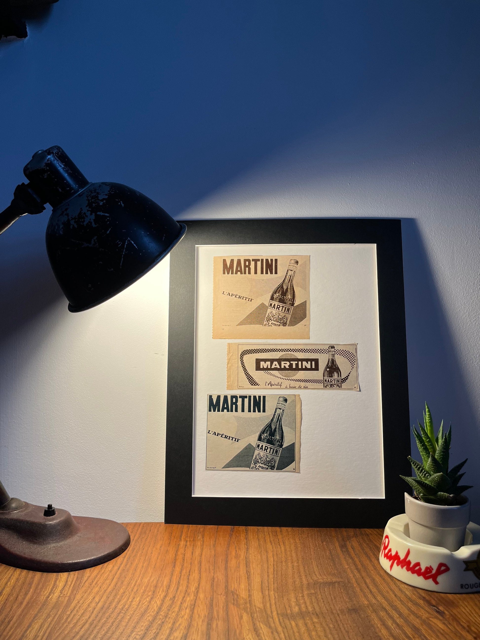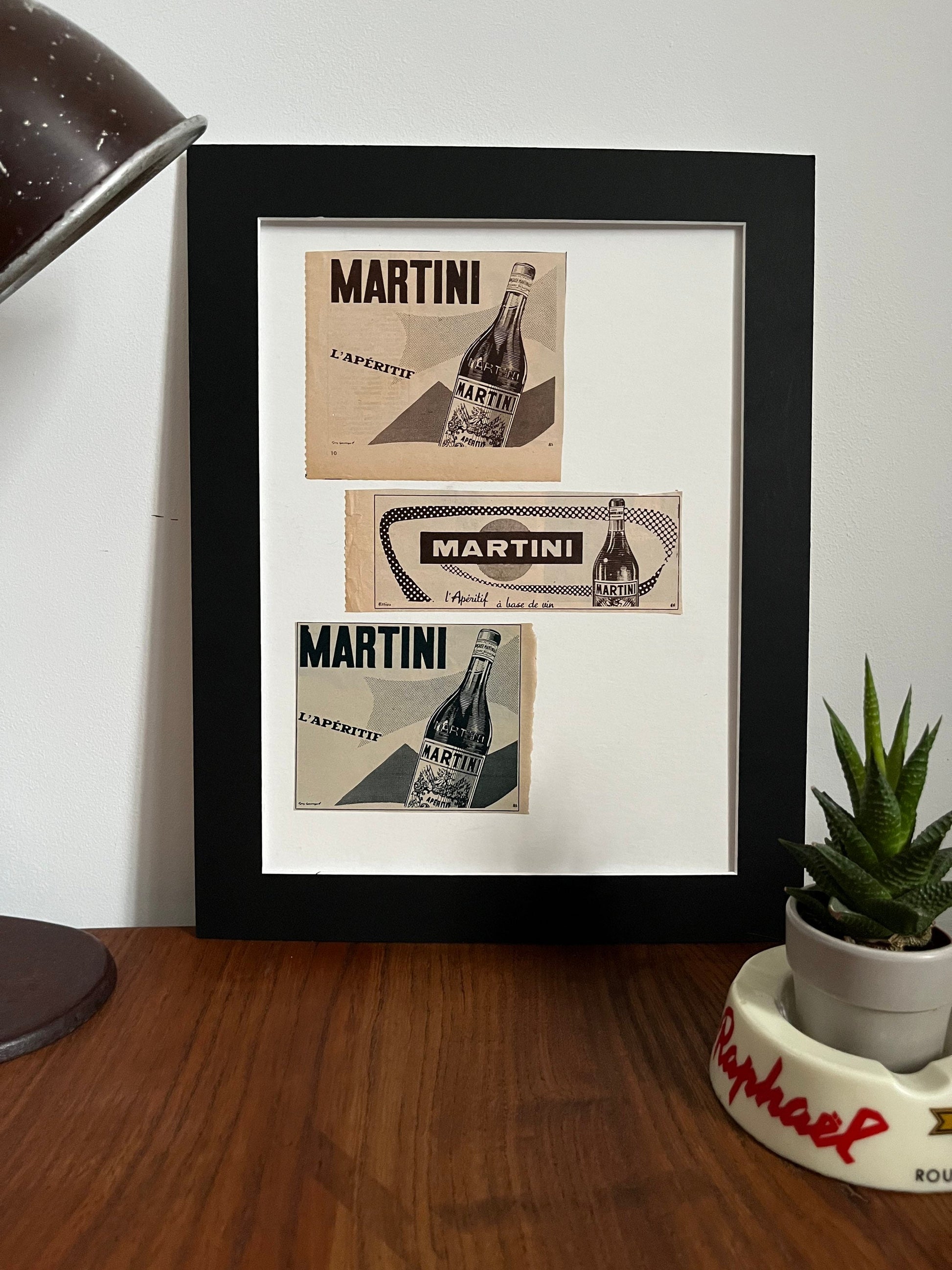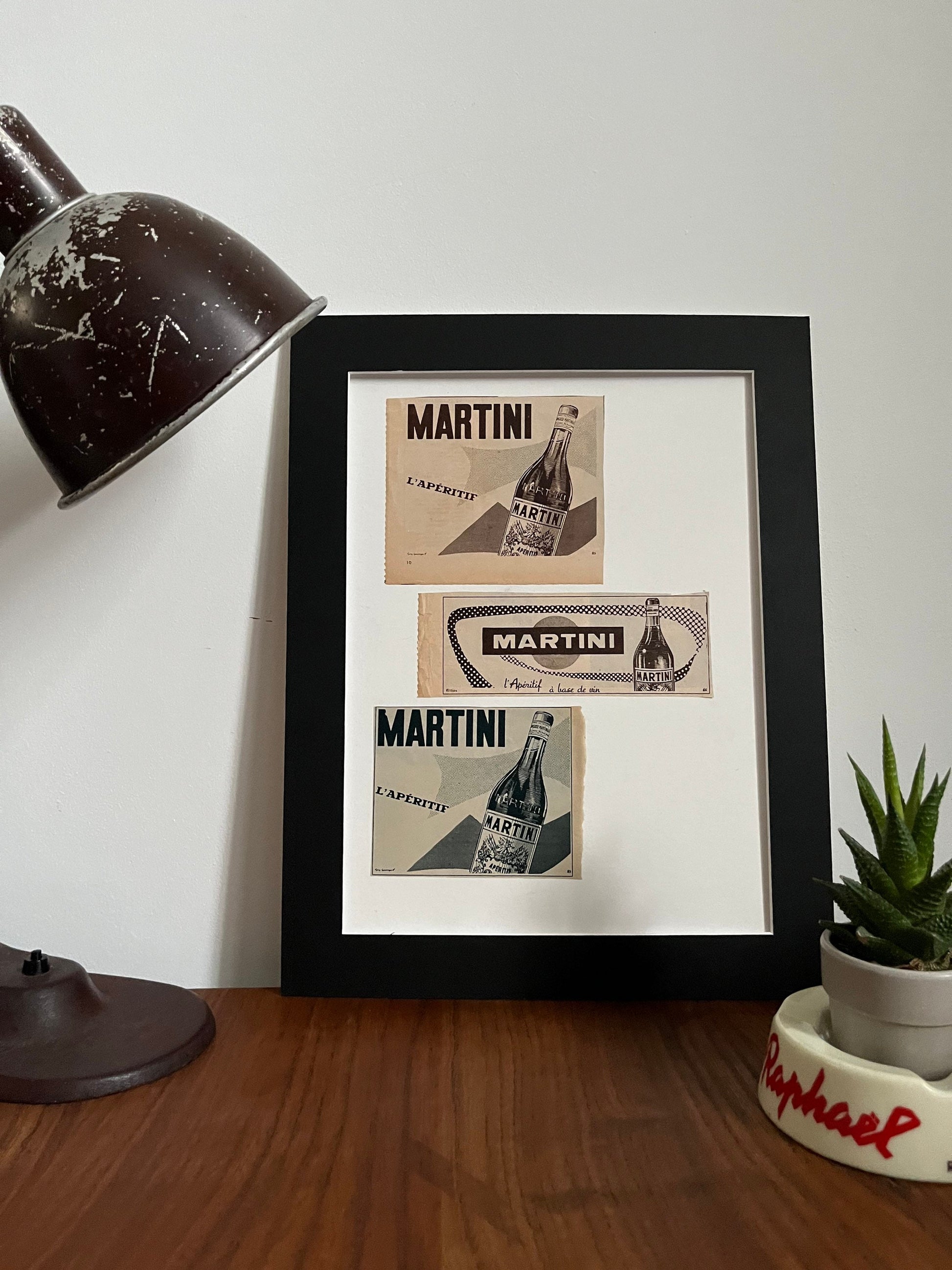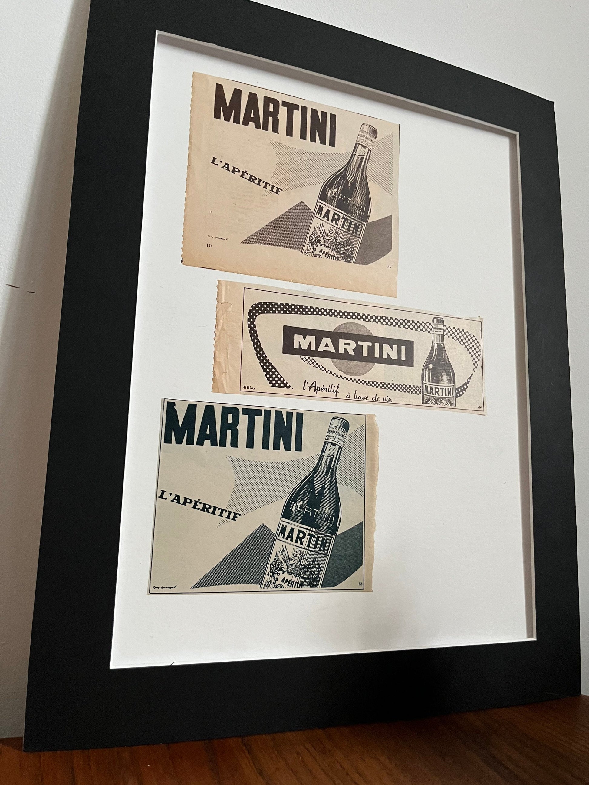 Three Original 1950s Martini advertisement logos cut and mounted onto card and ready for framing. This is an original print and not a scanned copy.. A superb piece of artwork and an excellent gift