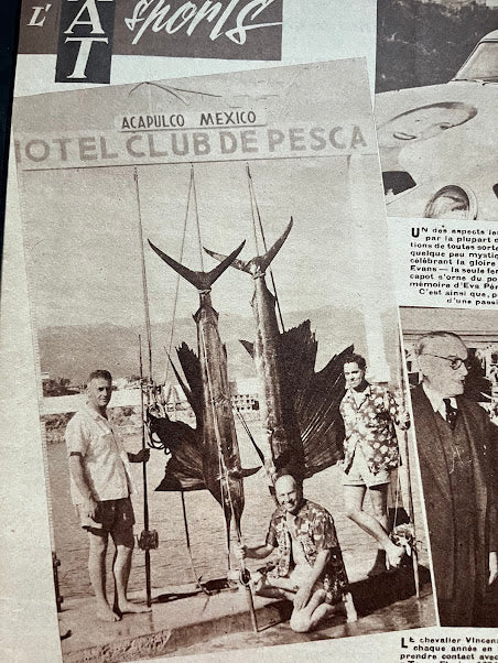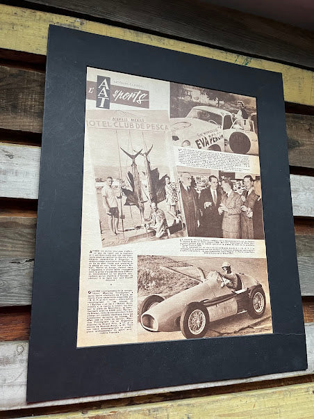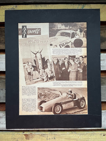 Rare magazine print of the Eva Peron Porsche 356 Carrera PanAmerica race car from a french publication.