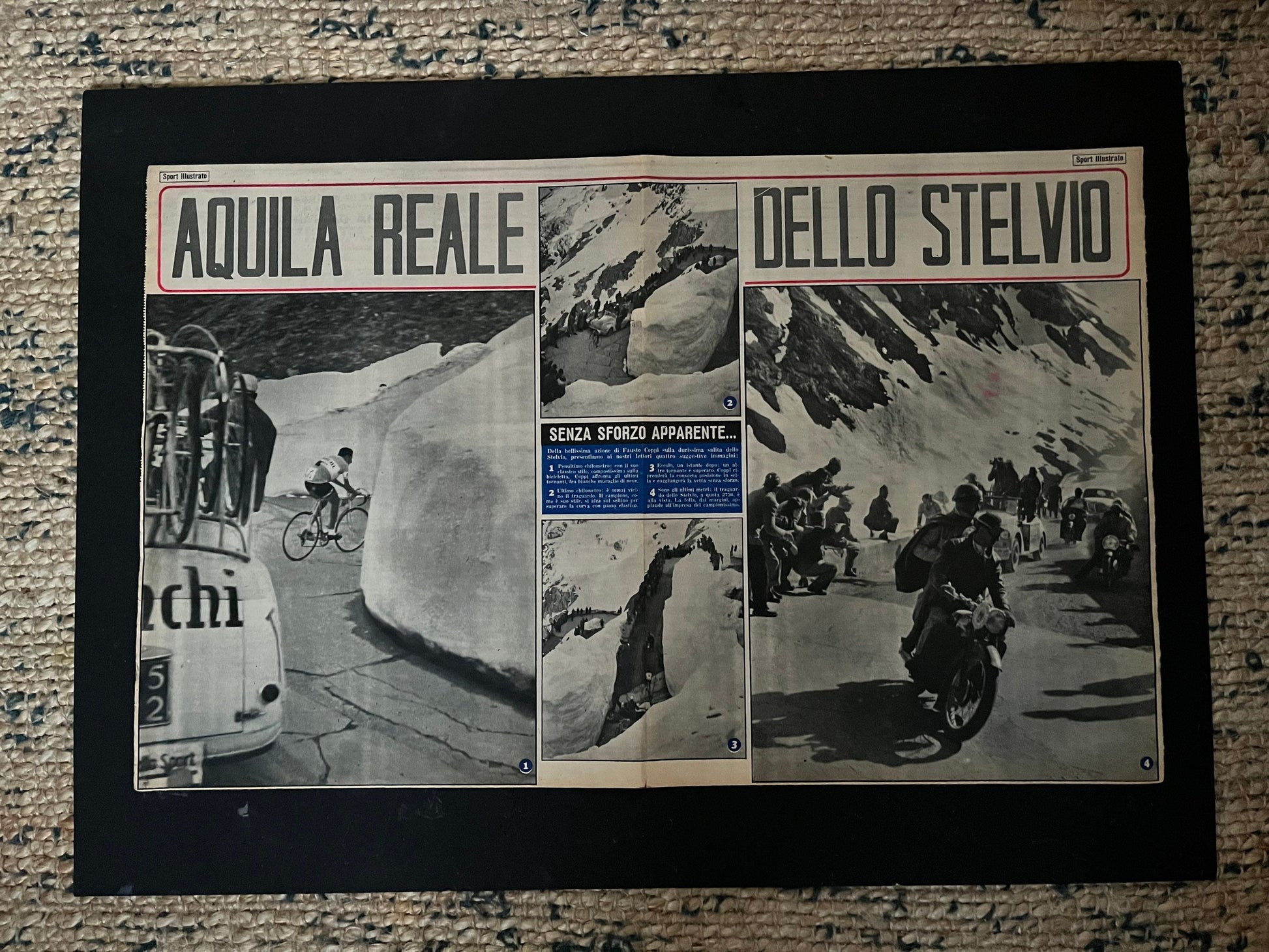 Vintage Cycling Print - Fausto Coppi, Stelvio Pass, Bianchi Original, 1953