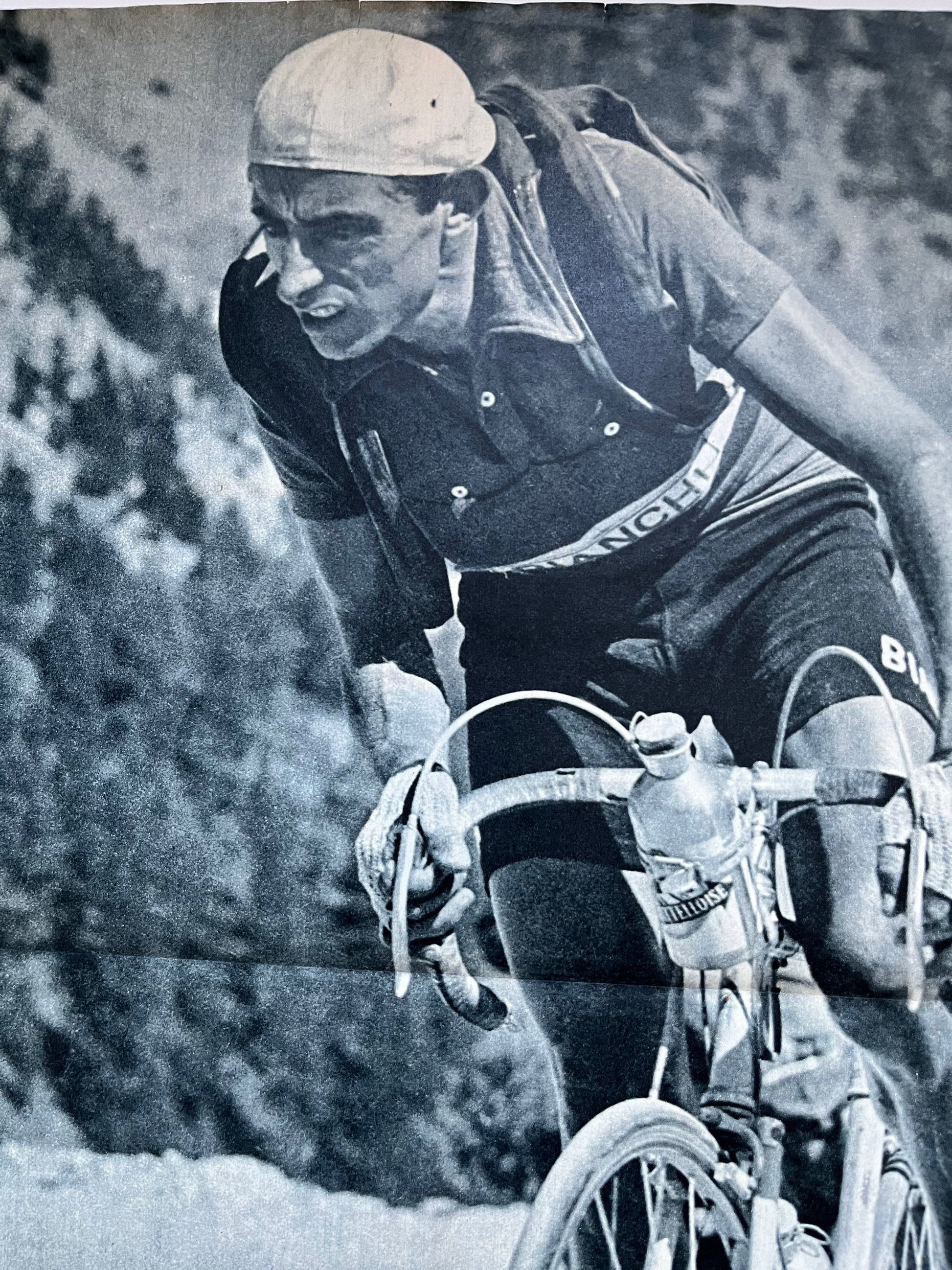 Vintage Cycling Print - Fausto Coppi, Bianchi Original Signed, 1953