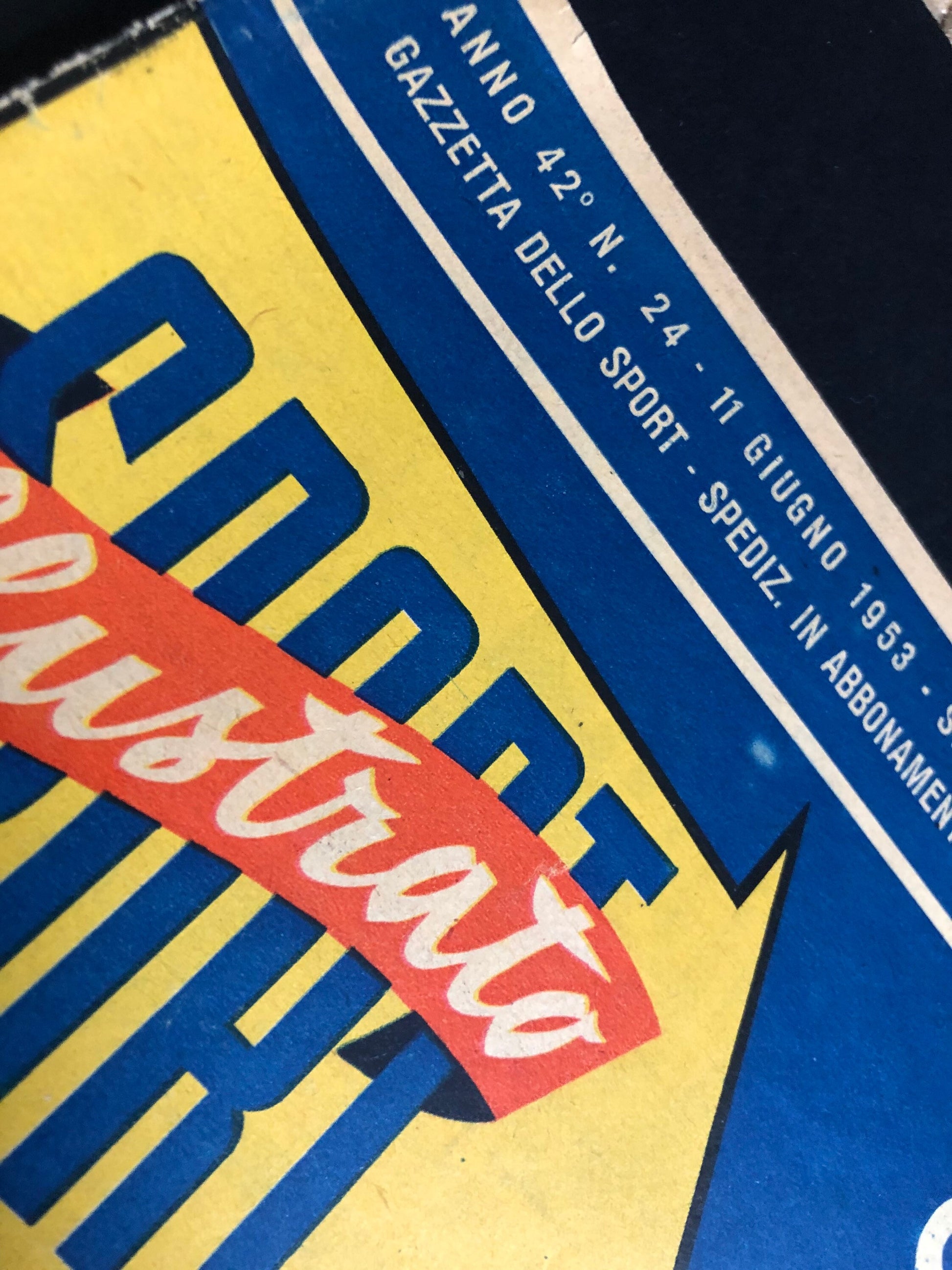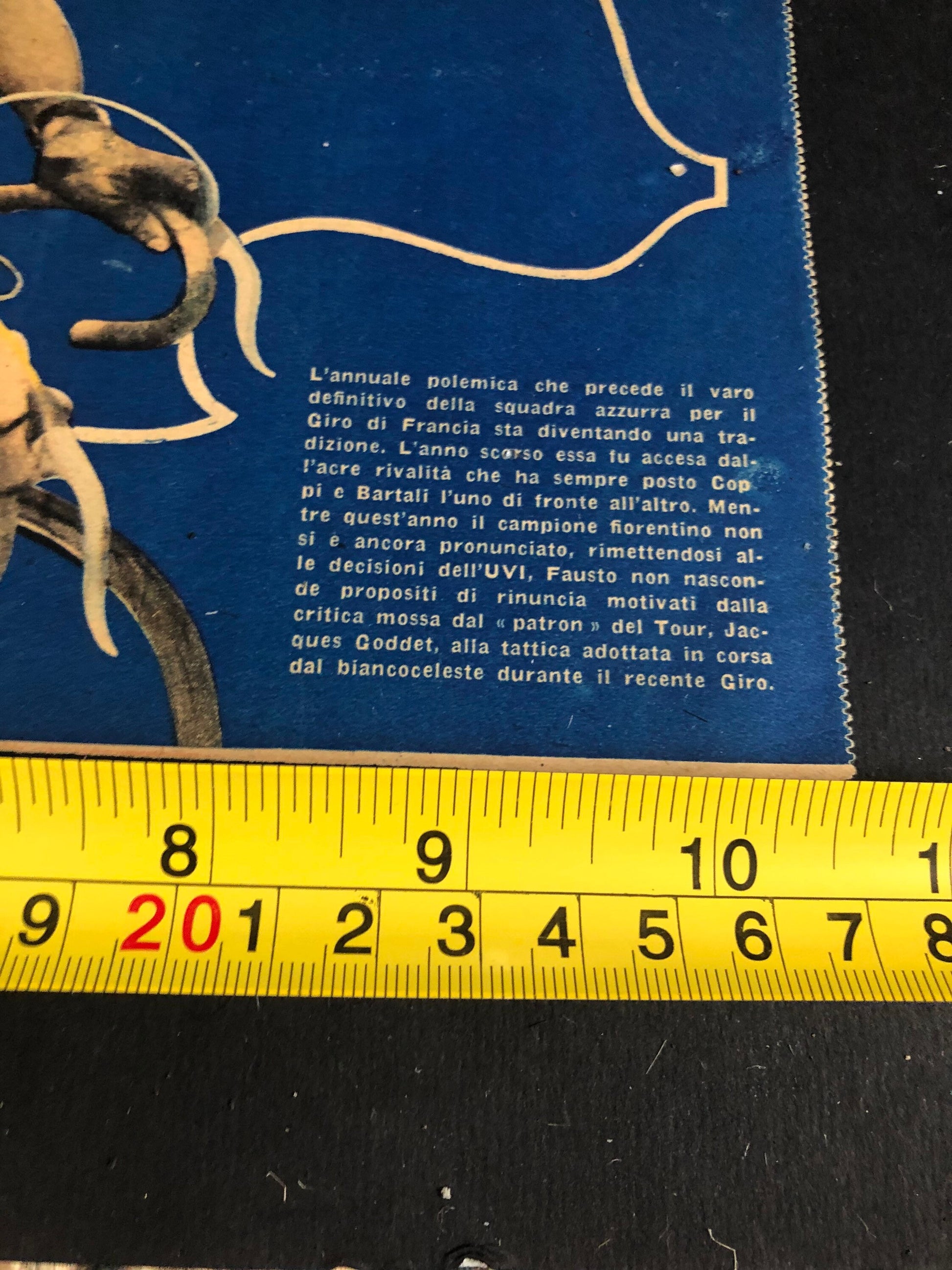Iconic and very rare Original 1953 Italian cycling magazine cover featuring cycling legend Fausto Coppi and rival Gino Bartali in an abstract image for Tour de France that year. An absolute must for any cycling fanatic. Would look excellent mounted and framed. A great looking piece of artwork for the lounge or study.