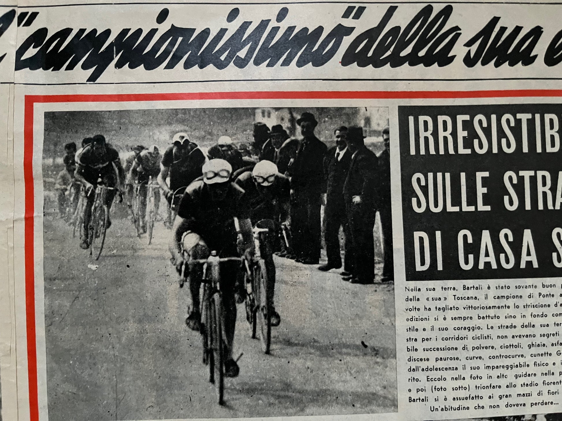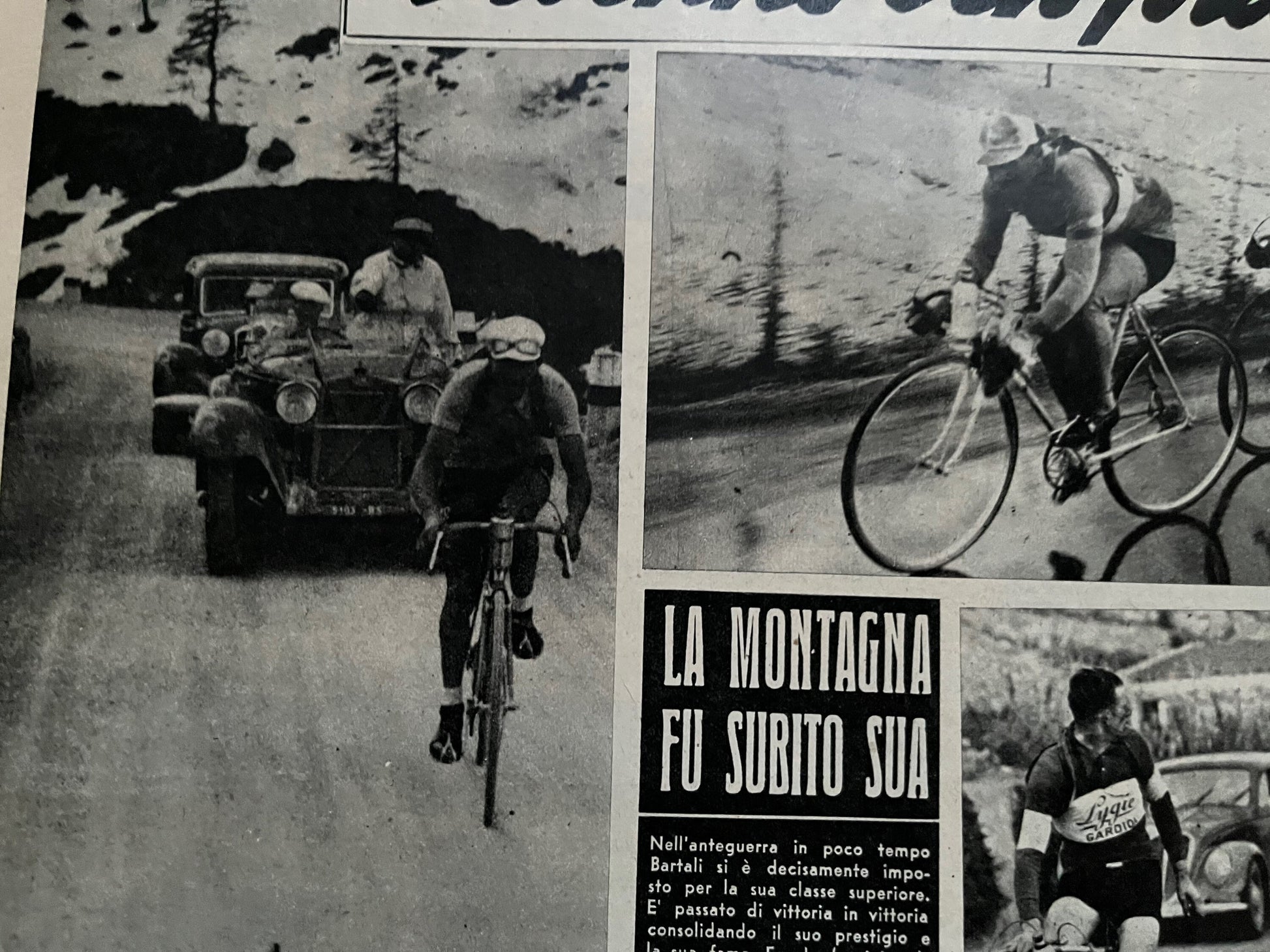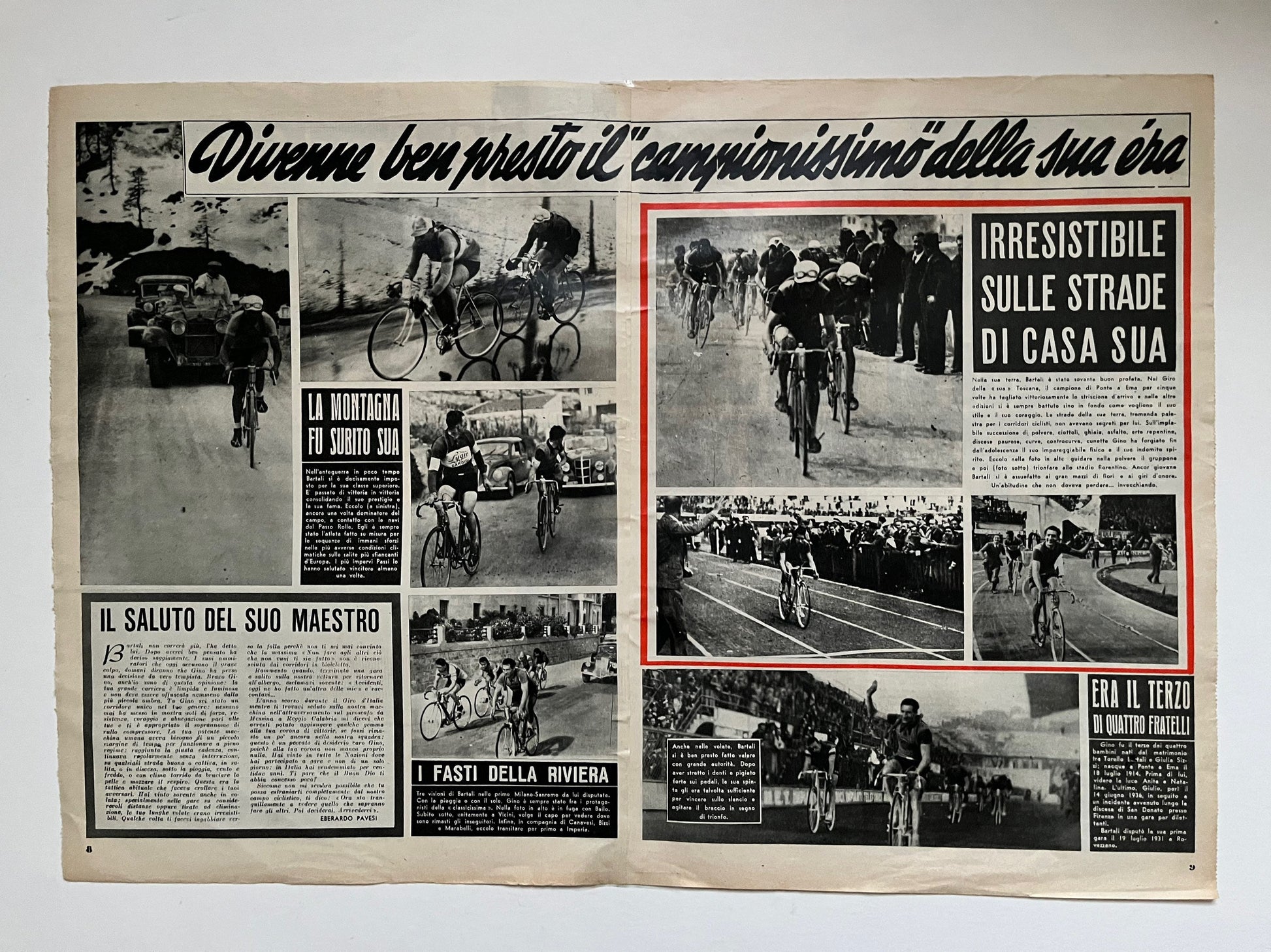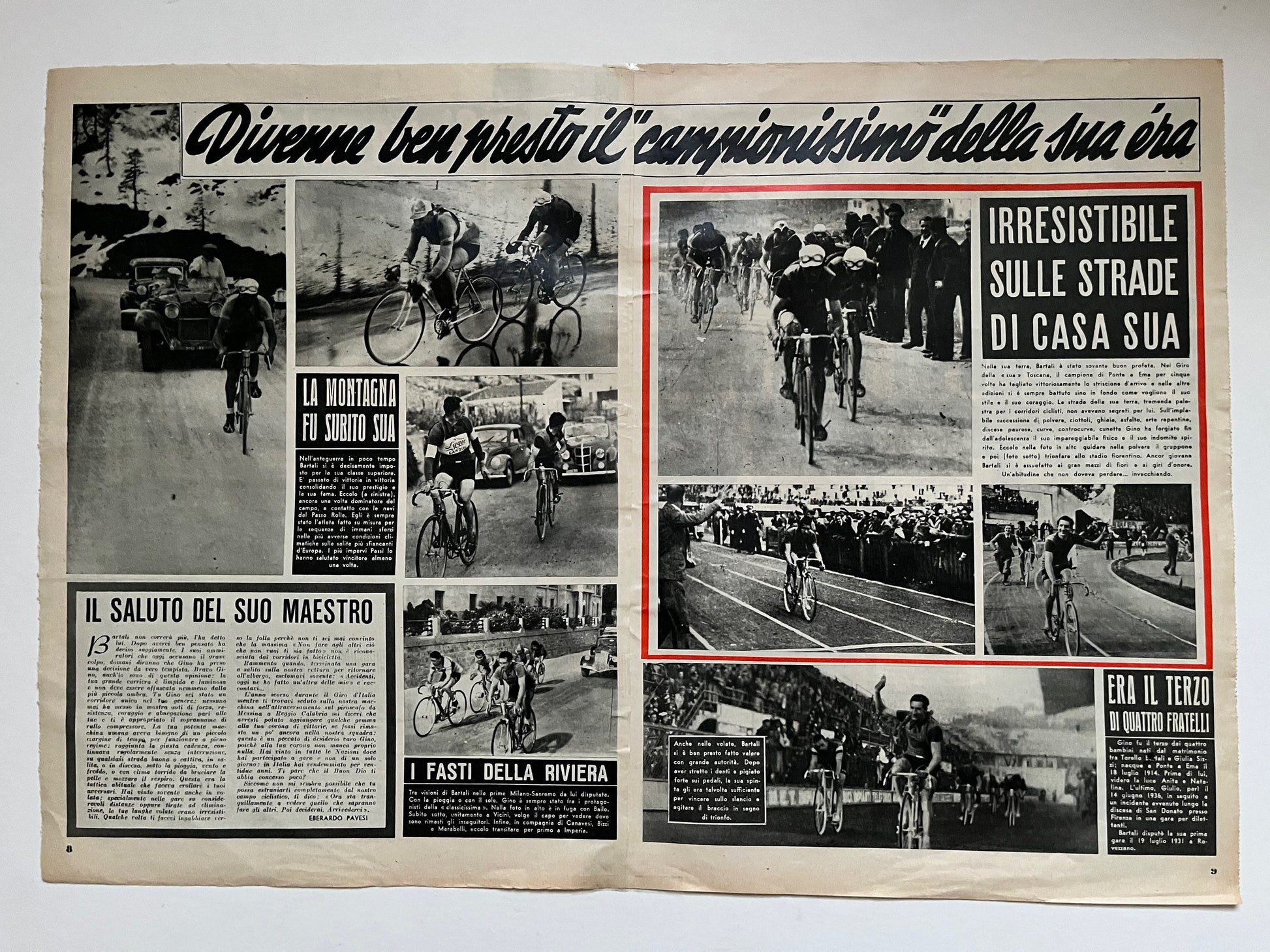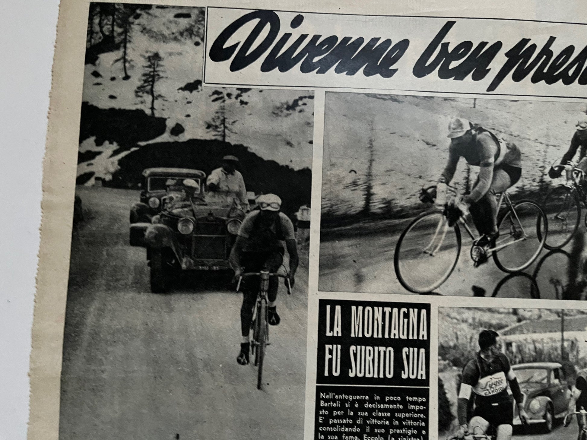 Very rare original 1953 Italian cycling magazine print featuring cycling legend Gino Bartali. Would look excellent framed.