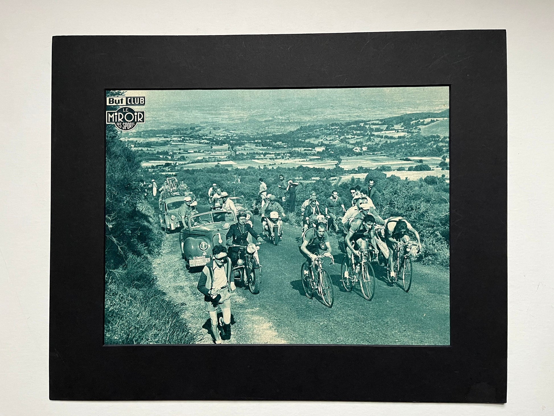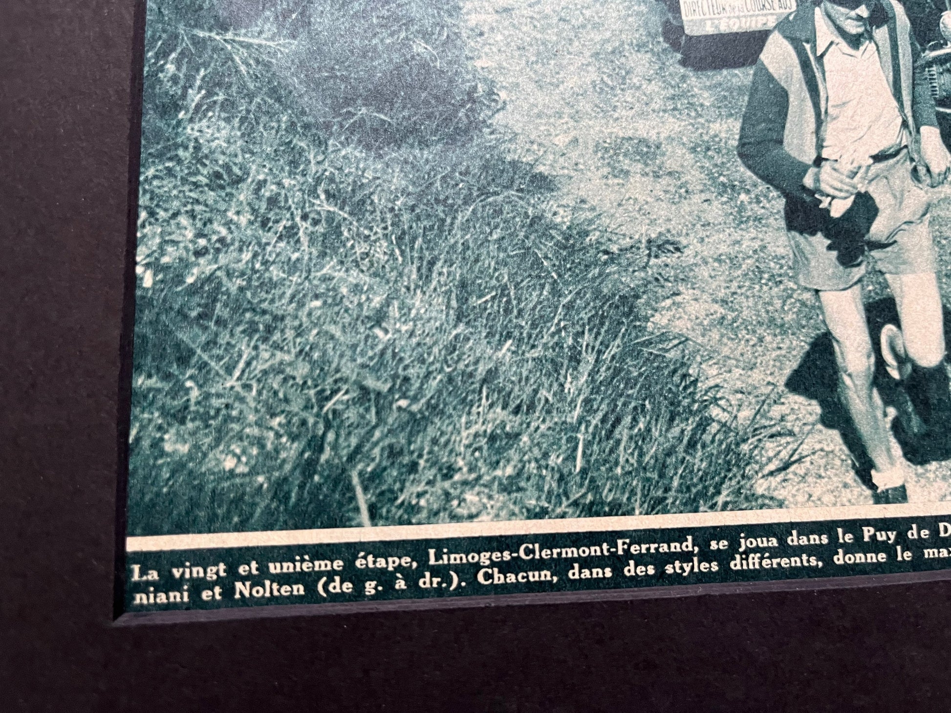 Very rare french magazine print featuring Gino Bartali and Raphael Geminiani in the Tour de France. Would look excellent framed.