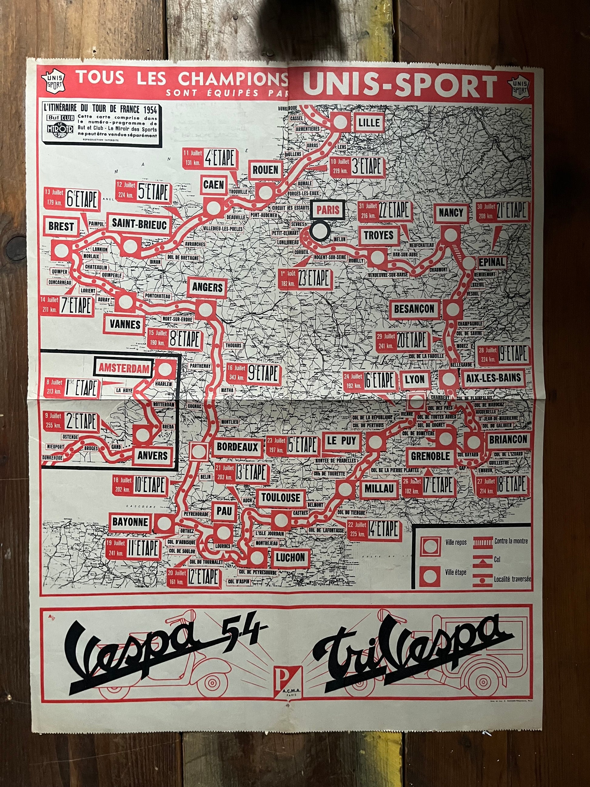 1954 Vintage Tour De France Vespa Stage map