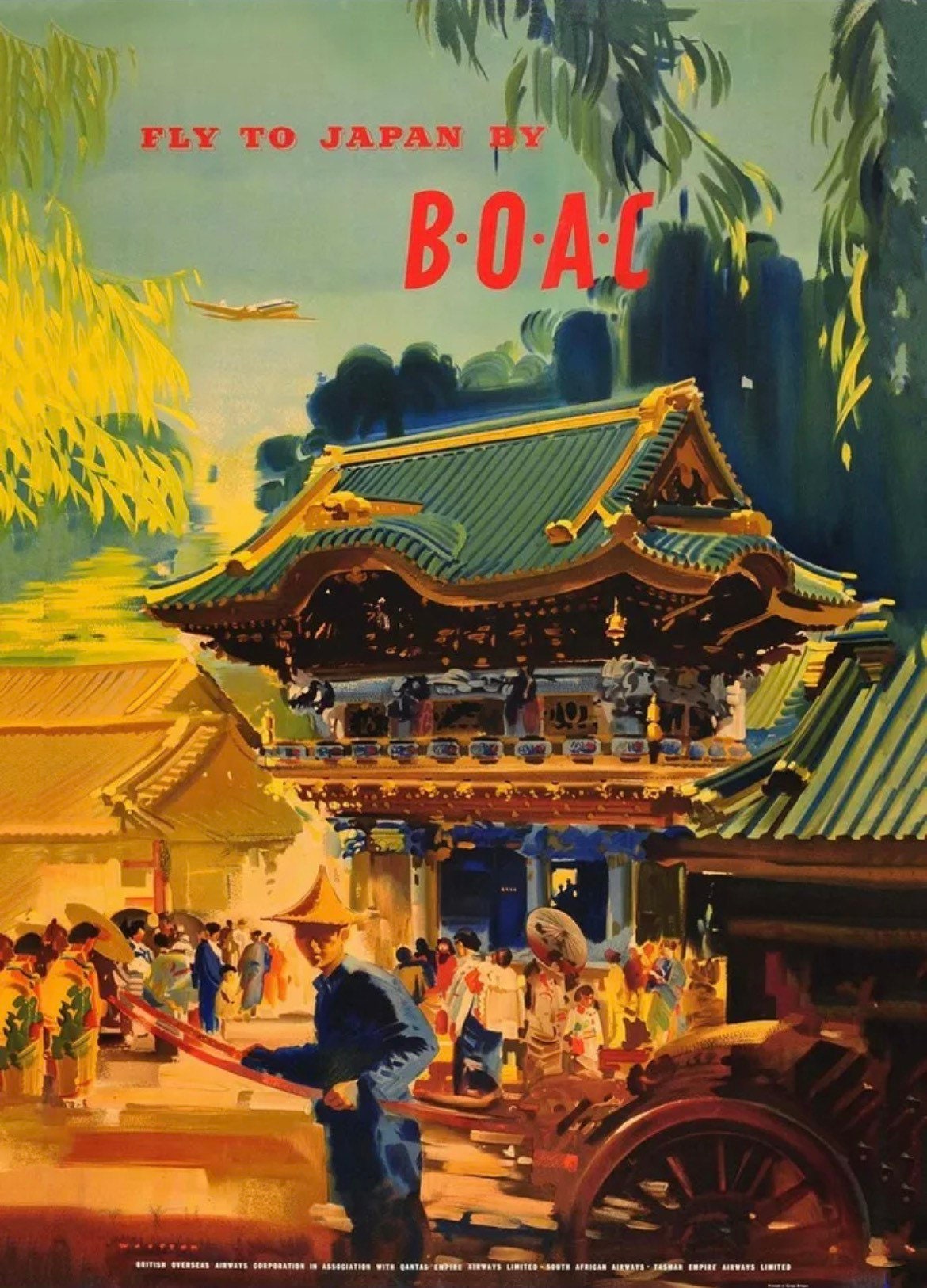 Vintage Advertising Poster - Fly BOAC Airlines to Japan, 1959