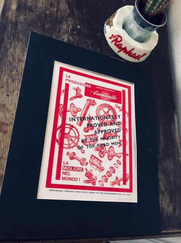 Very rare Original 1960s Campagnolo gran sport advertisement, mounted and ready for framing. This is an original print and not a scanned copy.. A superb piece of artwork and an excellent gift for the cycling nut in your life.