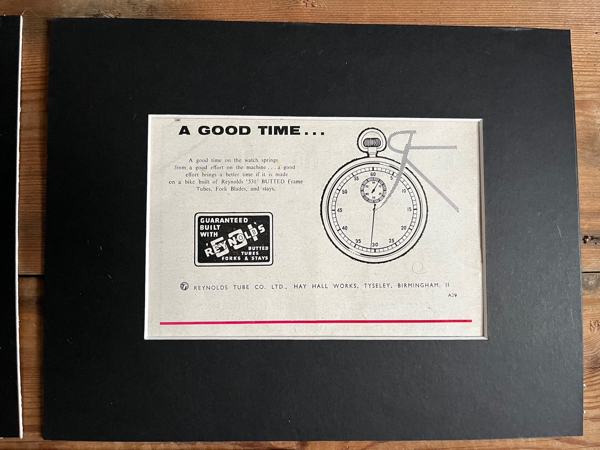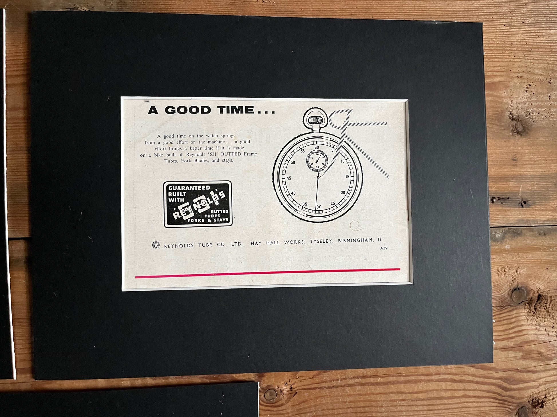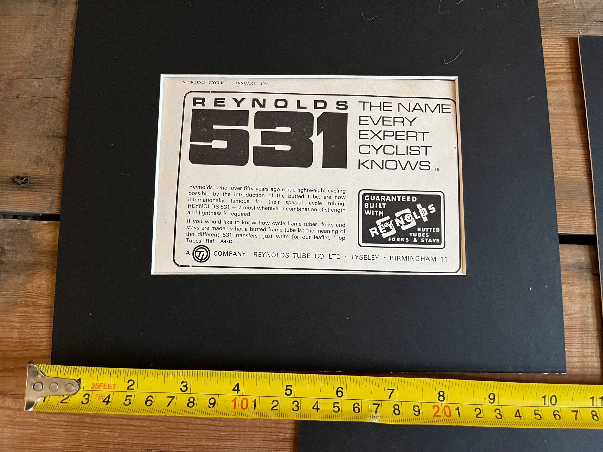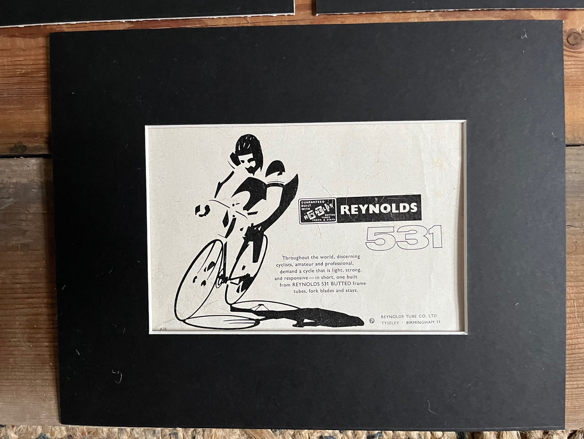 Three vintage Reynolds 531 advertisements card mounted and ready for framing.