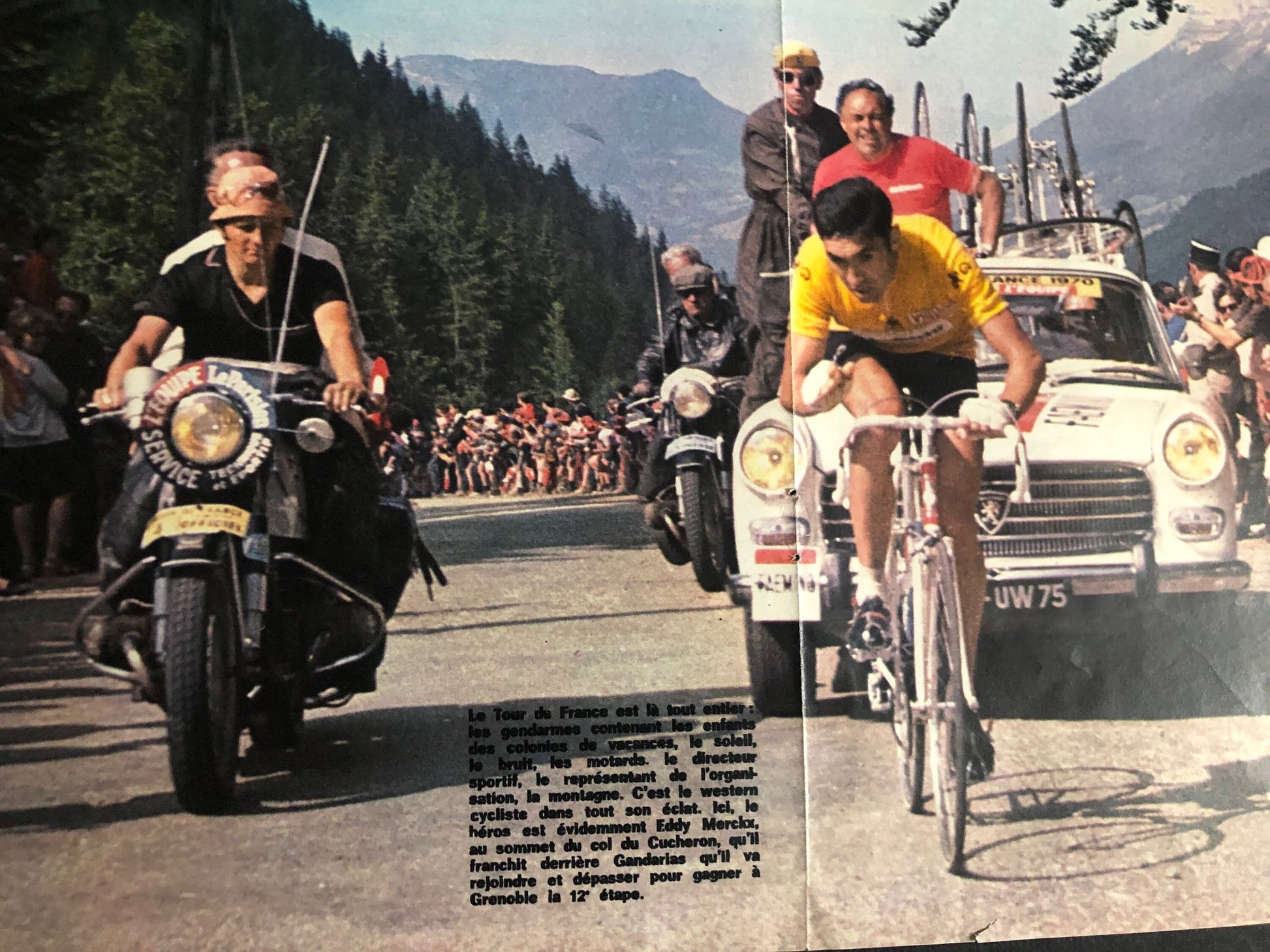 Vintage Cycling Print - Eddy Merckx, Peugeot, Original, 1970