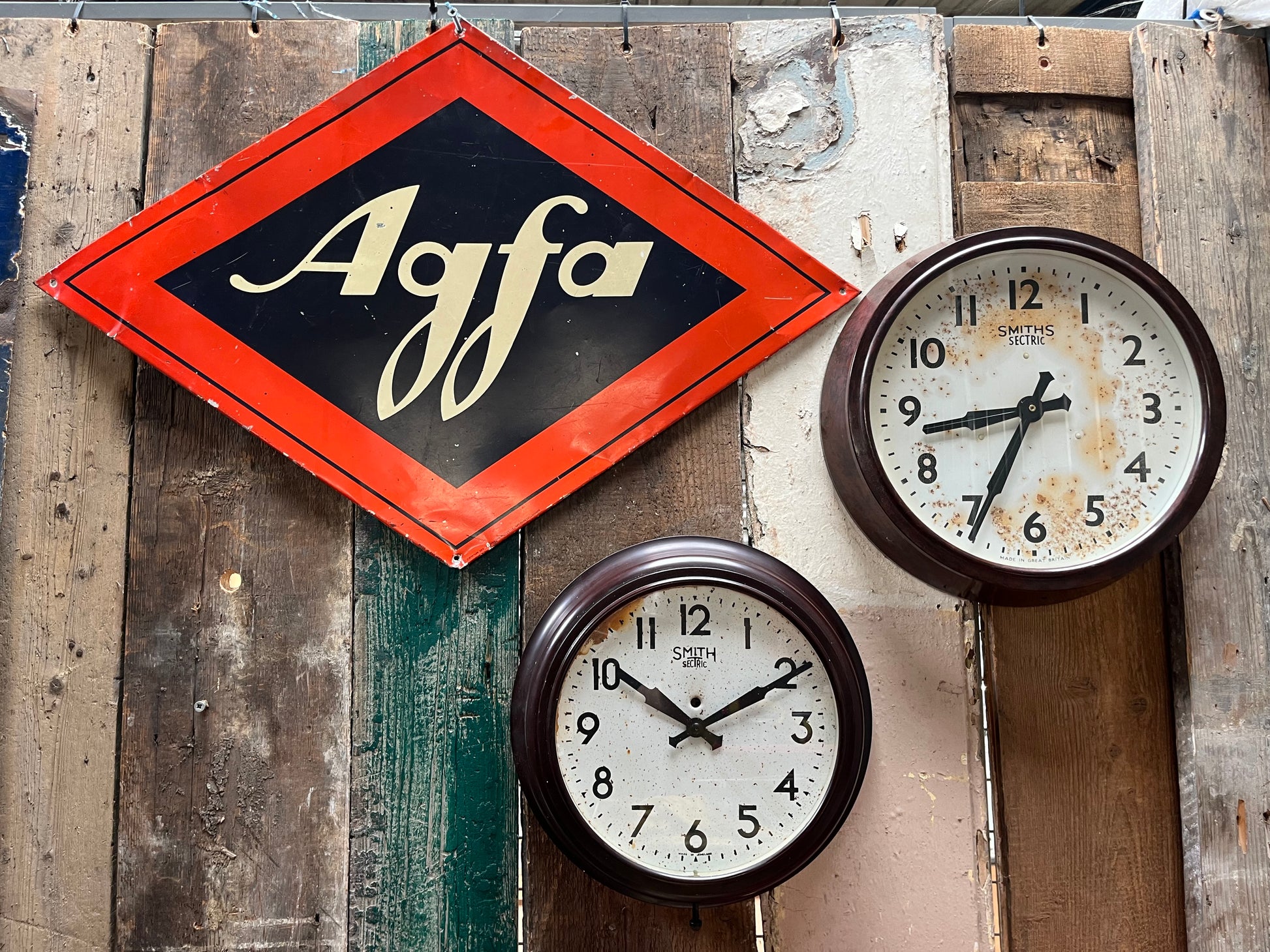 Vintage 1960s possibly 50s Agfa photographic sign presumably from a shop or booth. Beautiful typography, usual signs of wear. Made from tinplate.