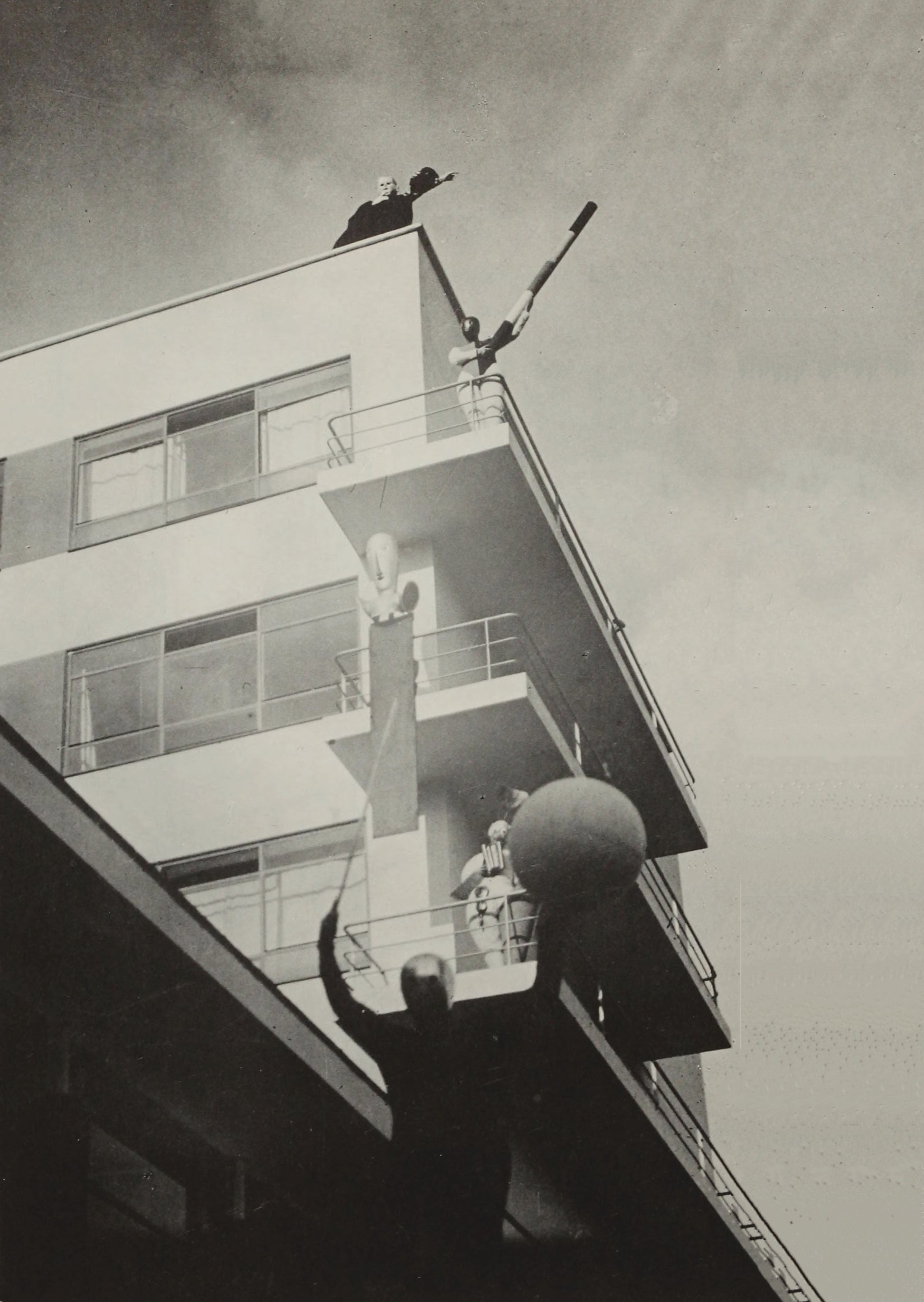 Oskar Schlemmer (born September 4, 1888 , in Stuttgart ; died April 13, 1943 , in Baden-Baden ) was a German painter , sculptor , and stage designer . From 1920 to 1929, he worked as a master at the Bauhaus in Weimar and Dessau and designed its logo . Schlemmer's works primarily explored the position of the human figure in space. During his main creative period from 1920 to 1932, he produced numerous paintings of stereometric figures and interlocking groups of figures, whose geometric and choreographic design reflects a striving for universal harmony. Source : Wikipedia