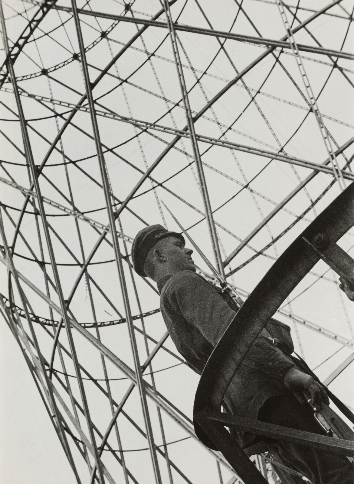 High quality reprint of an original 1929 Alexander Rodchenko poster of a Guard at Shukhov tower, Moscow. A great example of Rodchenko’s avant garde approach to photography, showcasing form and composition.