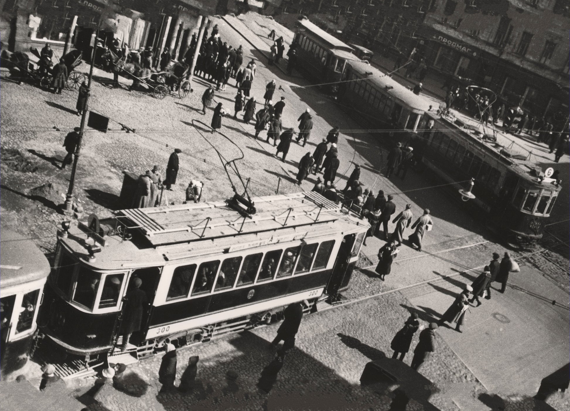 High quality reprint of an original 1932 Alexander Rodchenko aerial photo of a tram in Moscow. Myasnitskaya and Kirova. A great example of Rodchenko’s avant garde approach to photography, showcasing form and composition.