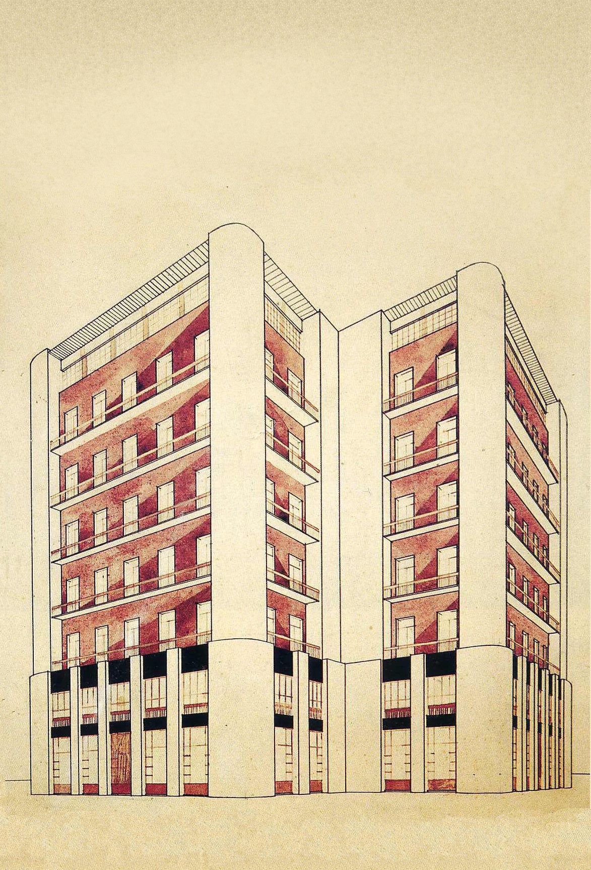 Antonio Sant'Elia - Italian futurism poster - House with External Elevators', Italy, c1914