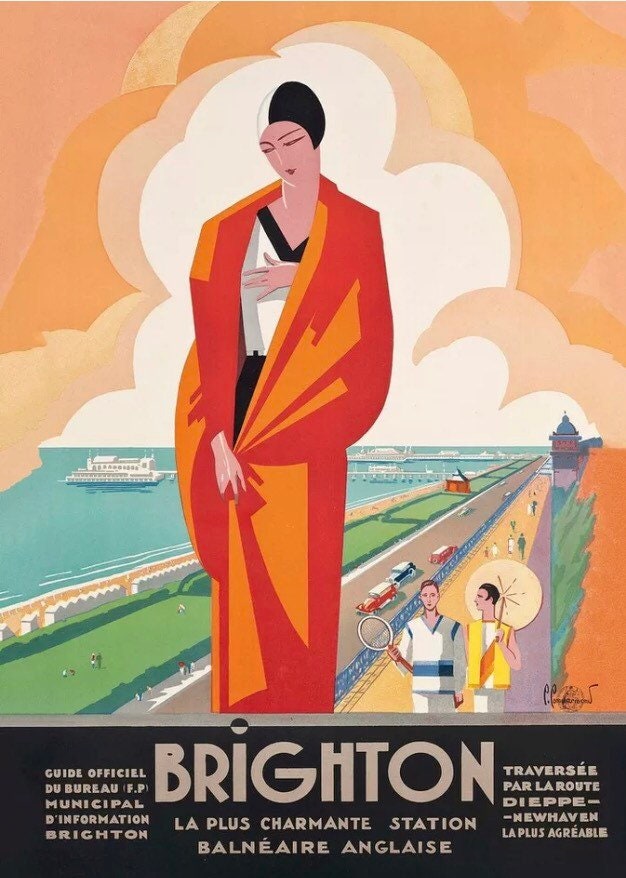 High quality reprint of an original artwork - 1921 Brighton from Dieppe British transport advertising poster. Stunning image.