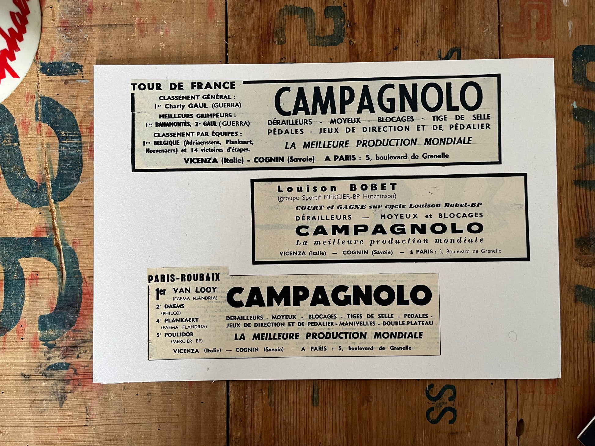 Bespoke artwork made from Campagnolo original advertisements from the 1950s and 60s.