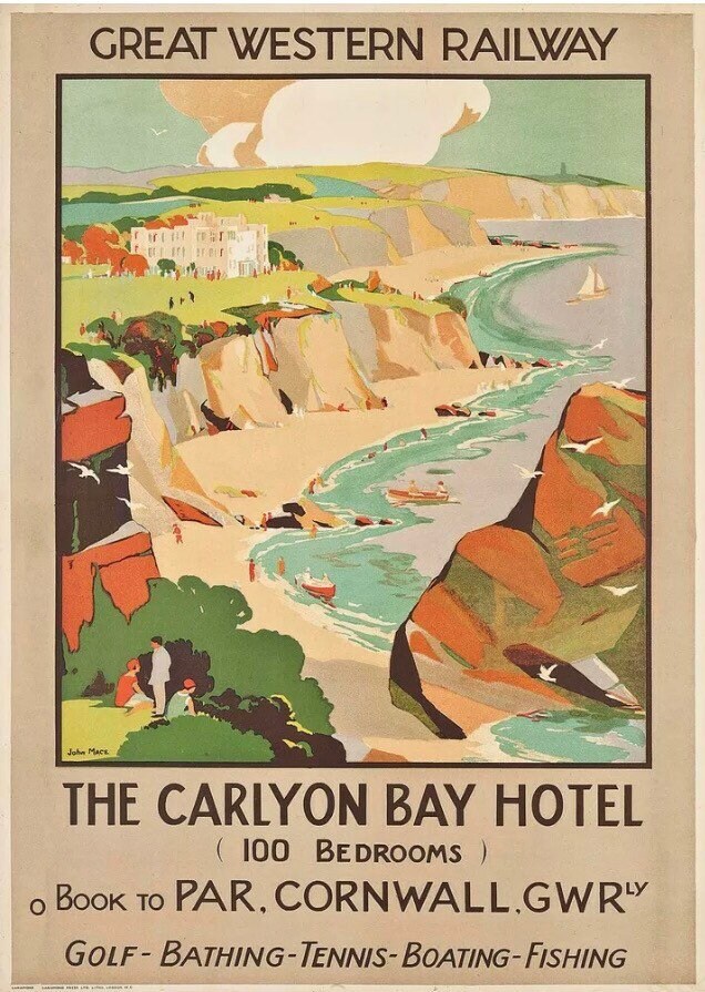 Extremely high quality reprint of an original 1930s print advertising the Carlyon bay hotel in Cornwall.