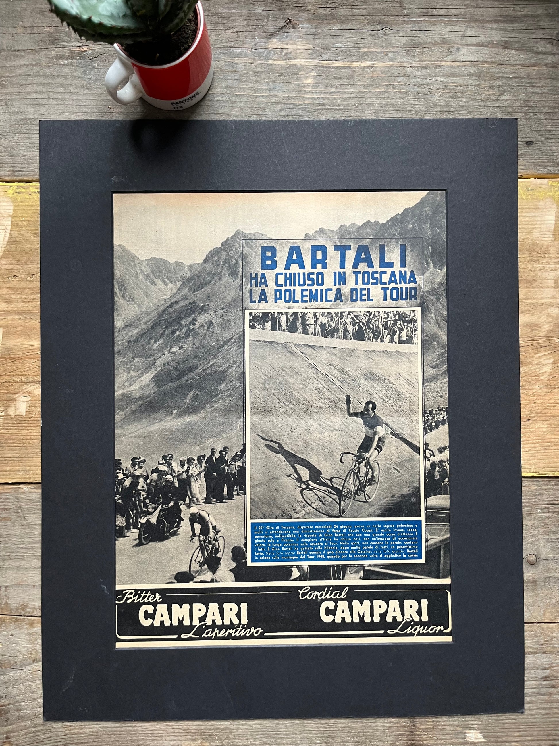 Gino Bartali 1952 Giro d'Italia / Campari vintage cycling print c1950