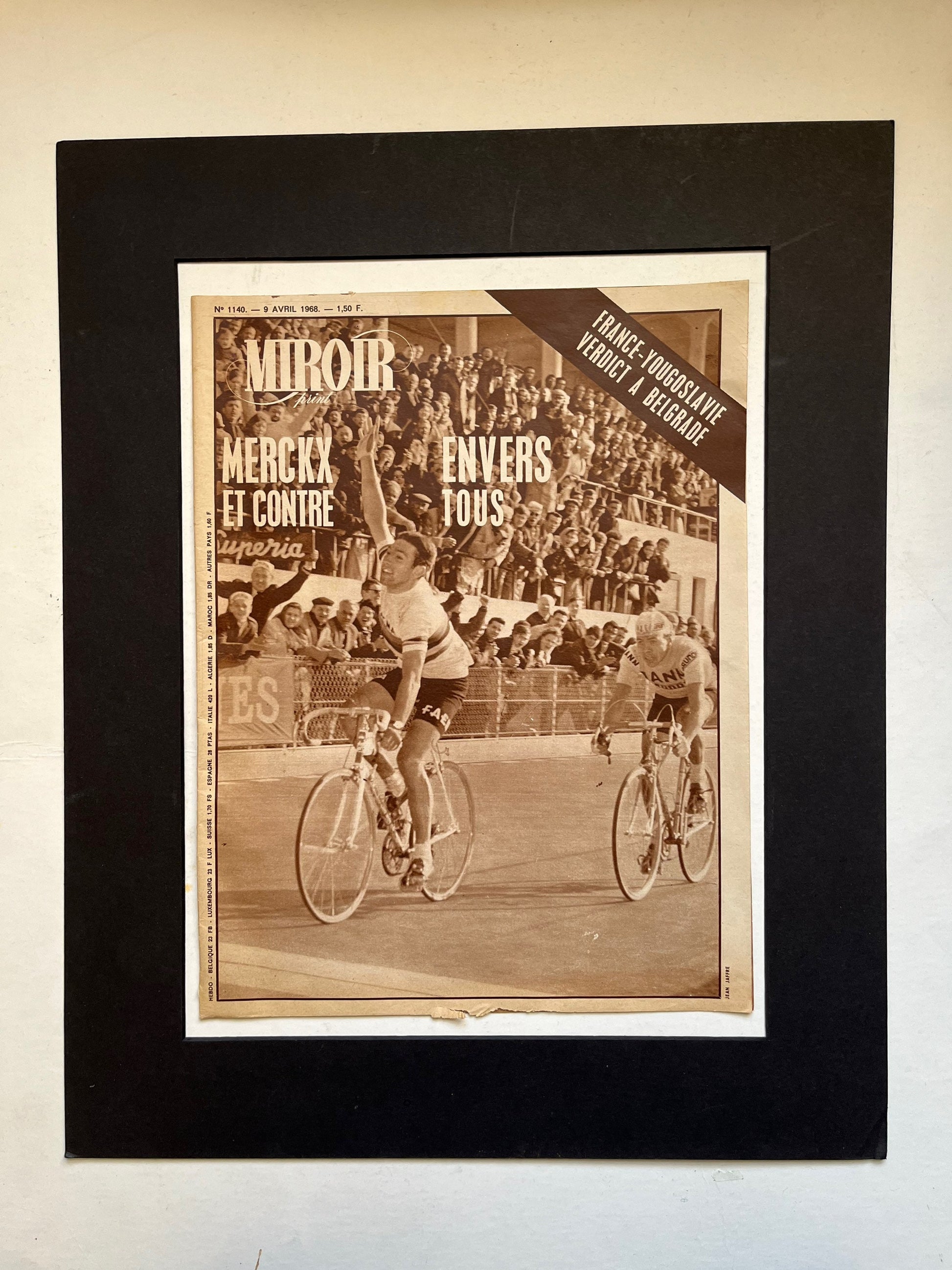 Iconic and very rare Original 1968 French cycling magazine print featuring cycling legend Eddy Merckx having just won the tour of Belgium.