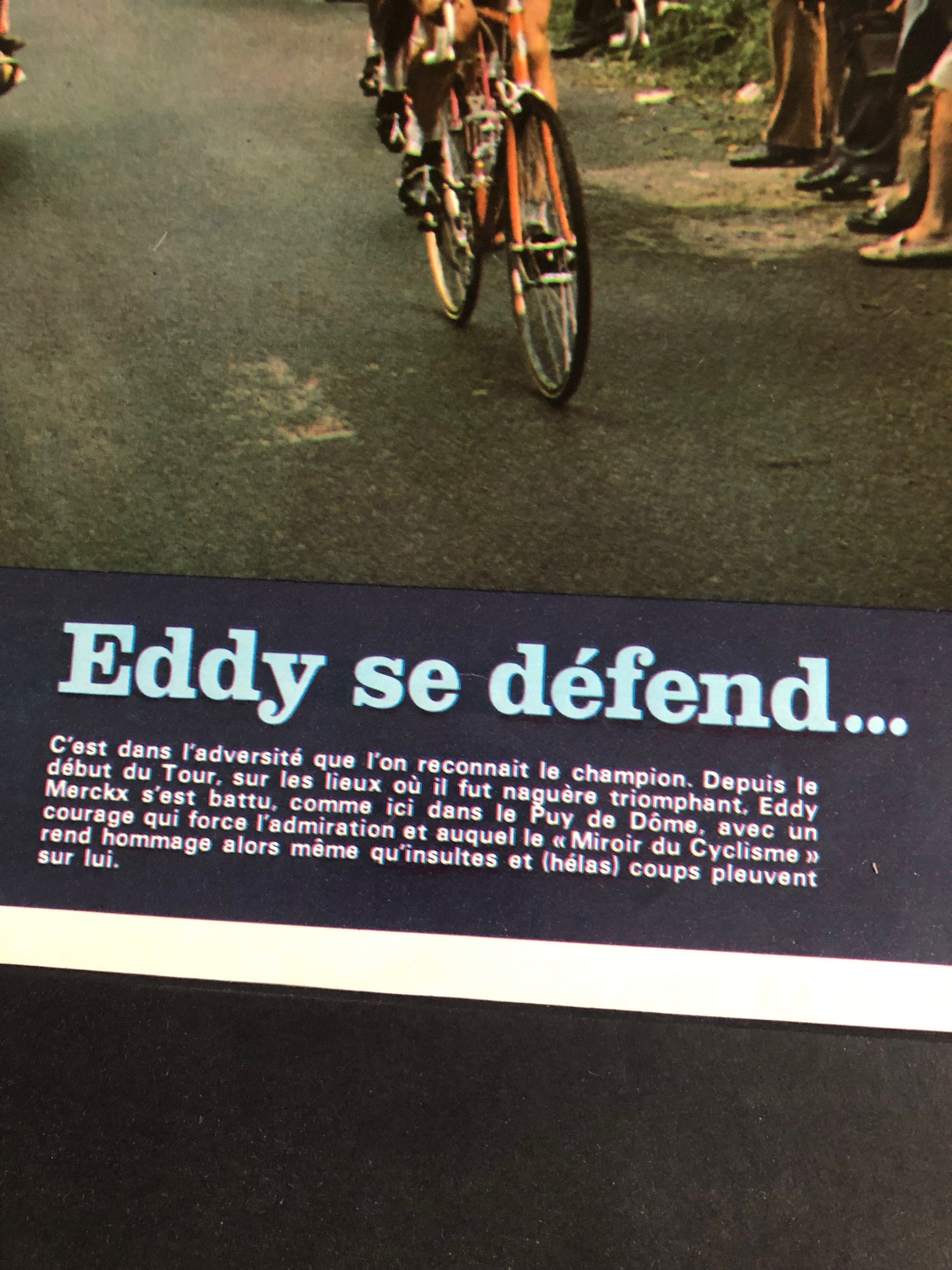Very rare Original 1970 french cycling magazine print featuring cycling legend Eddy Merckx at the front of the peleton in the Tour de France that year. Would look excellent framed.