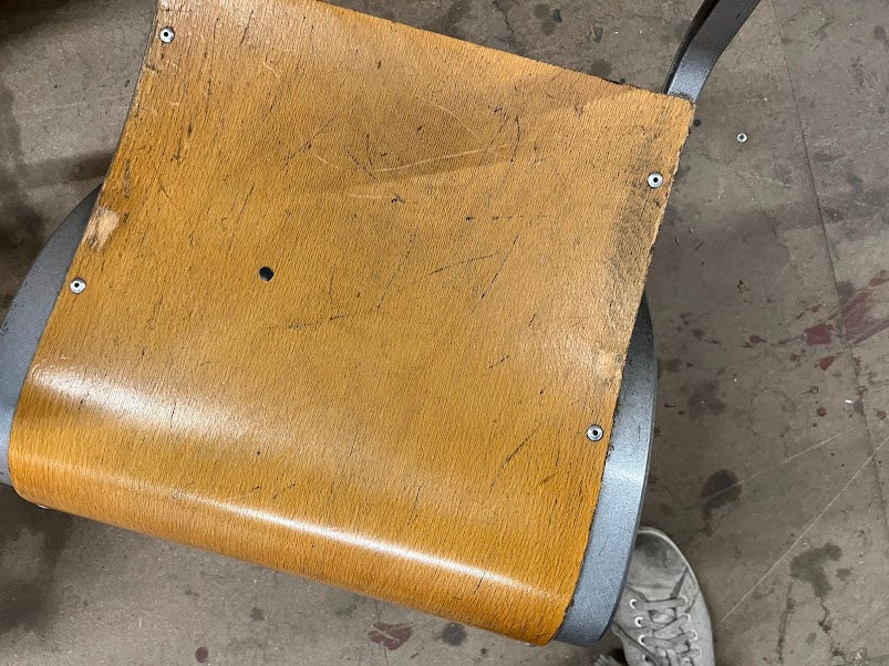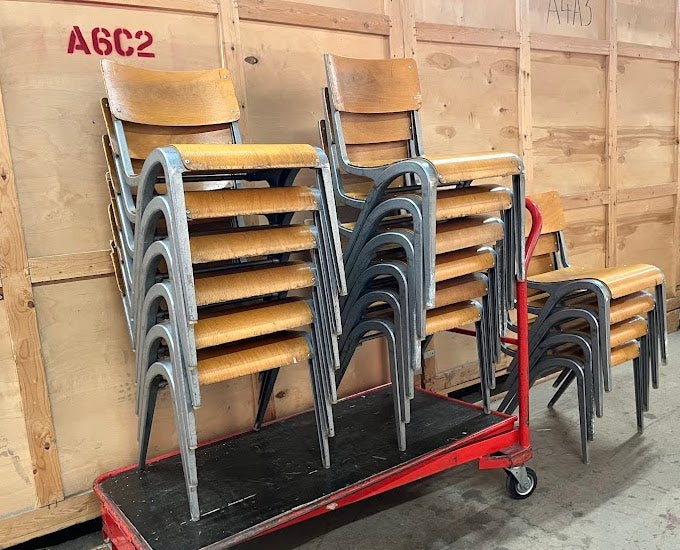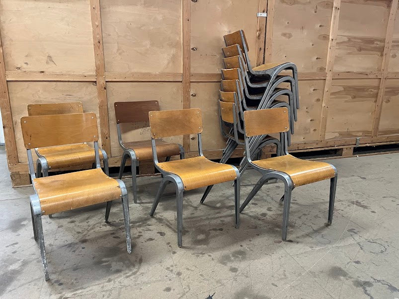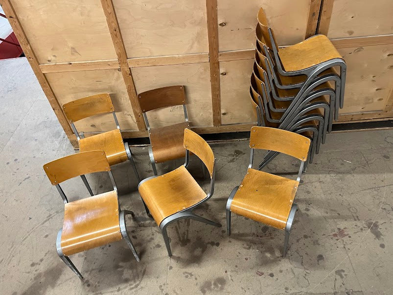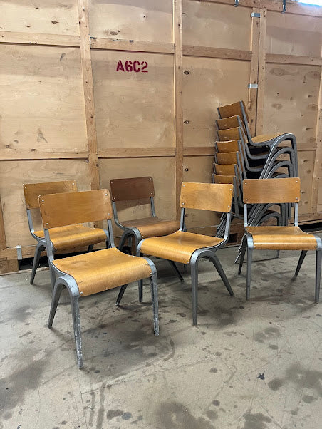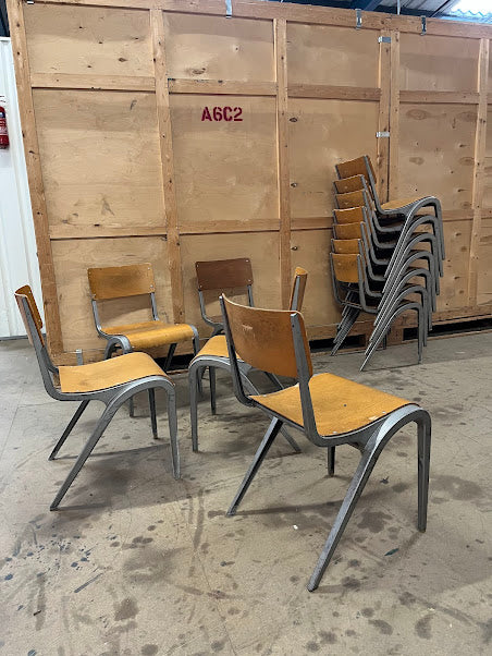 A design classic! Esavian Stacking school chairs designed by James Leonard for ESA, 1950s. An excellent example of midcentury industrial design.