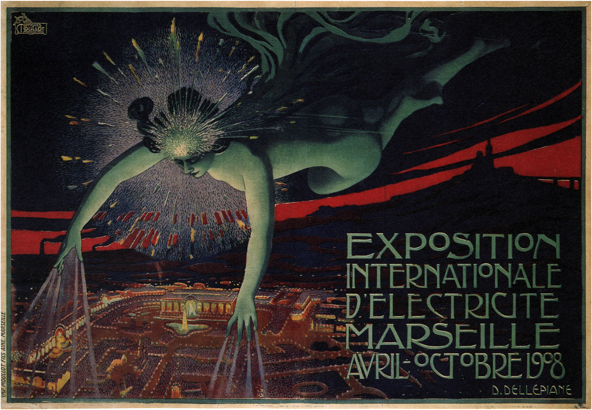 A high quality reprint of the iconic 1908 Exposition Marseille artwork by Davide Dellepiane