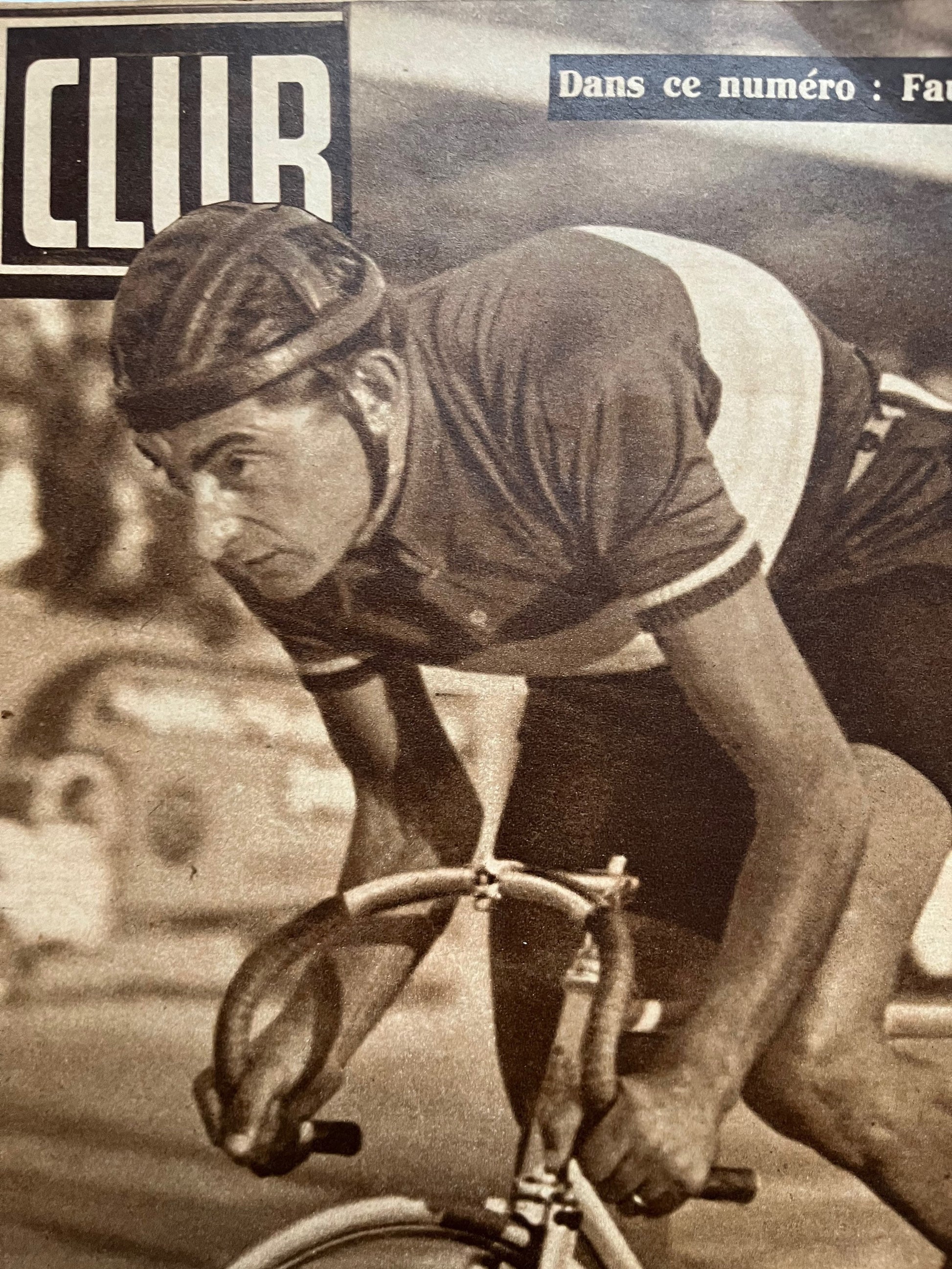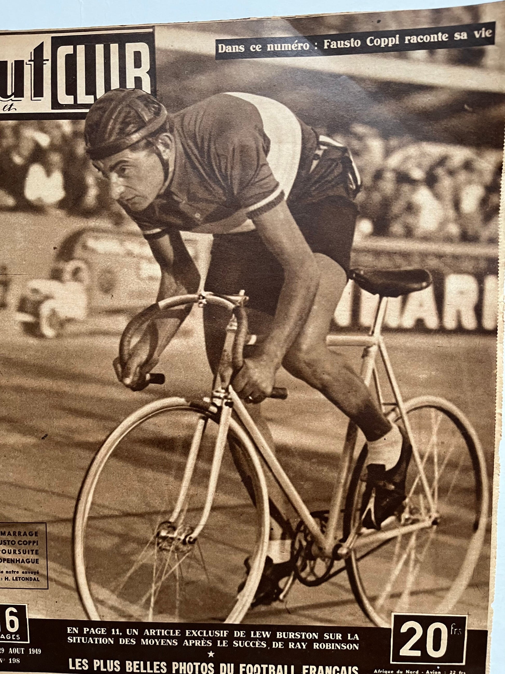 Iconic and very rare Original 1949 French cycling magazine print featuring cycling legend, “il campionissimo”Fausto Coppi on the track.