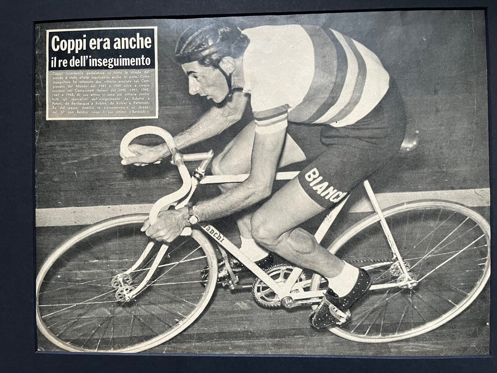 Iconic and very rare Original 1950s French cycling magazine print featuring cycling legend, “il campionissimo”Fausto Coppi on the track.