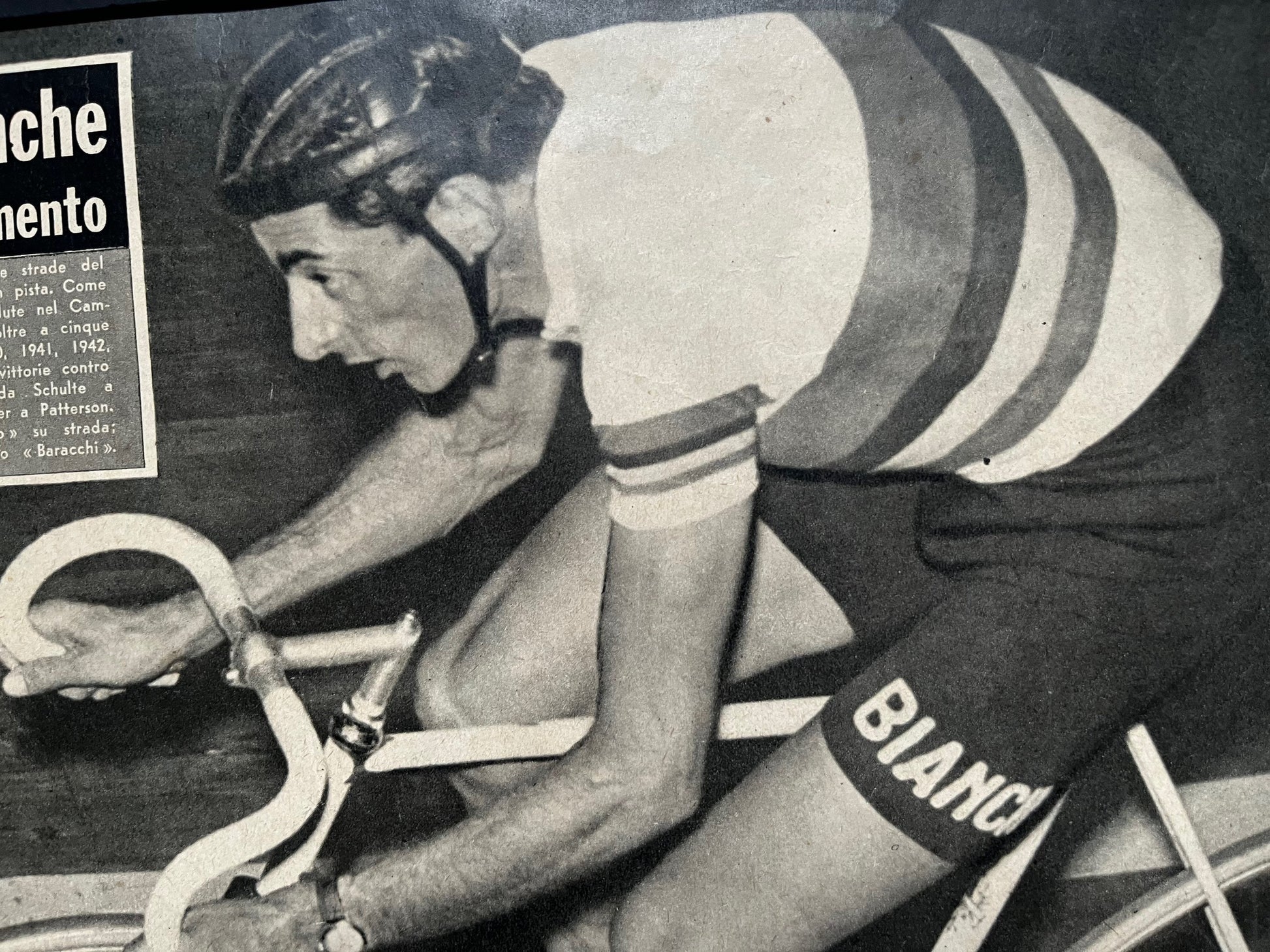 Vintage Track Cycling Print - Fausto Coppi, Original, 1950s