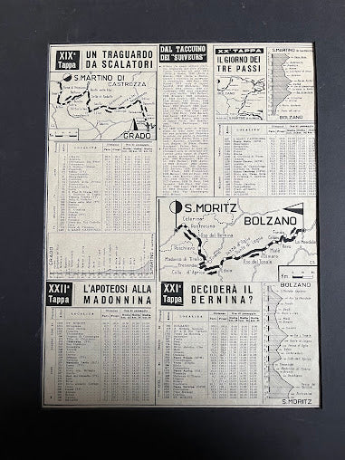Iconic and now very hard to find Italian magazine artwork of the 1963 Giro d’Italia route from an Italian magazine.