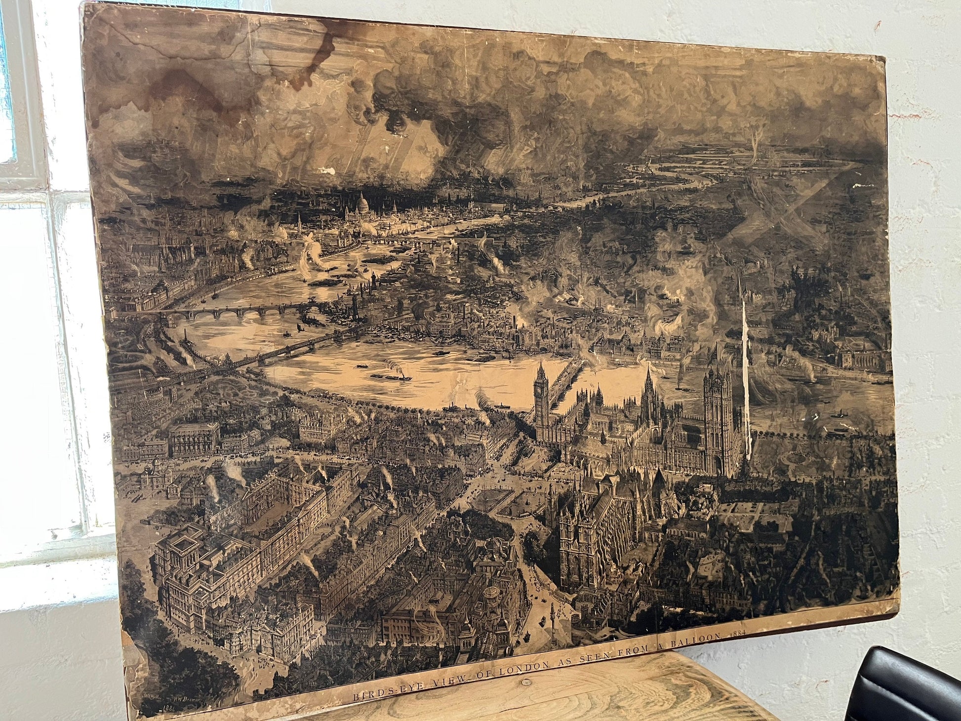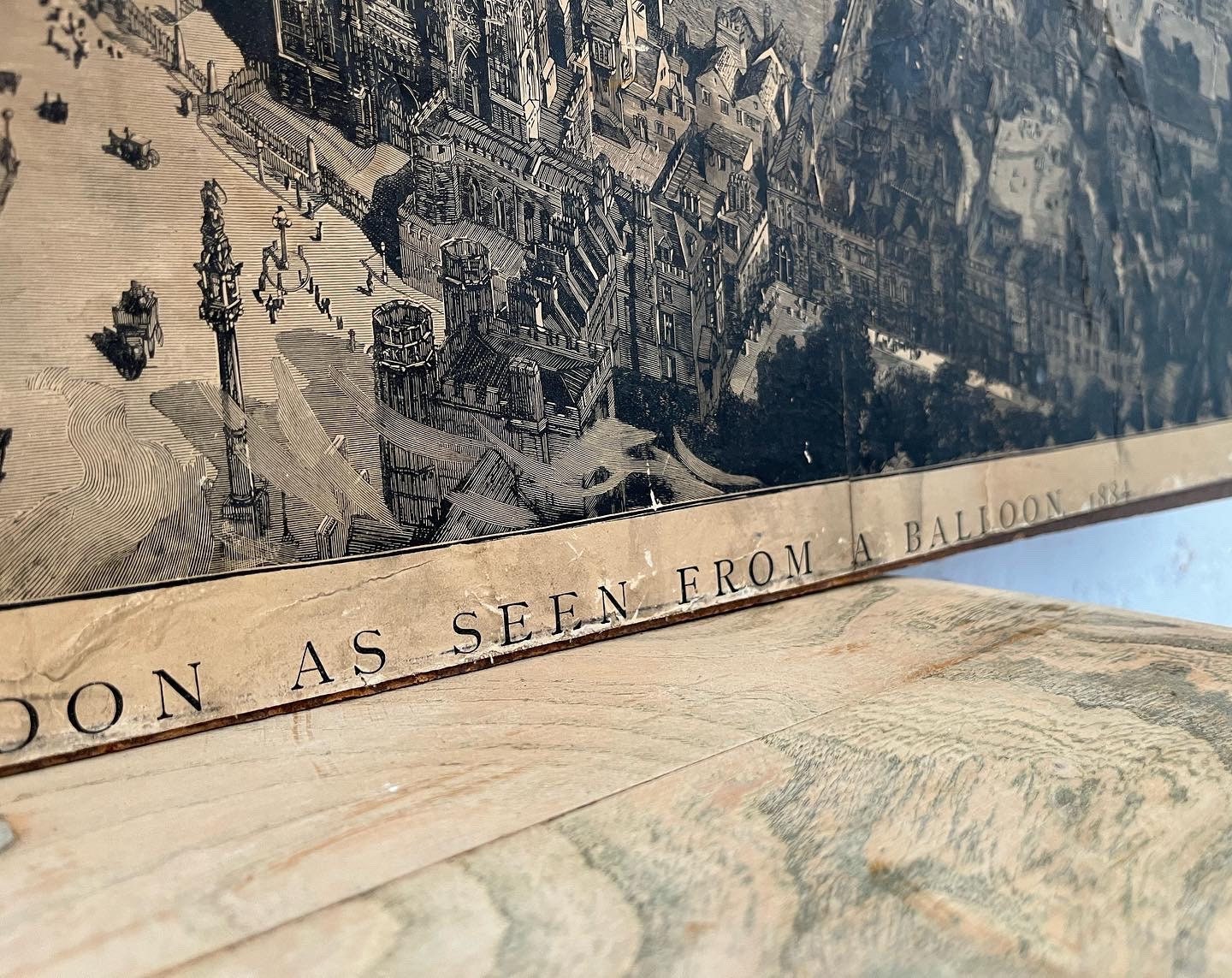 1884 HW BREWER BIRD’S EYE VIEW OF LONDON FROM A BALLOON ARTWORK.