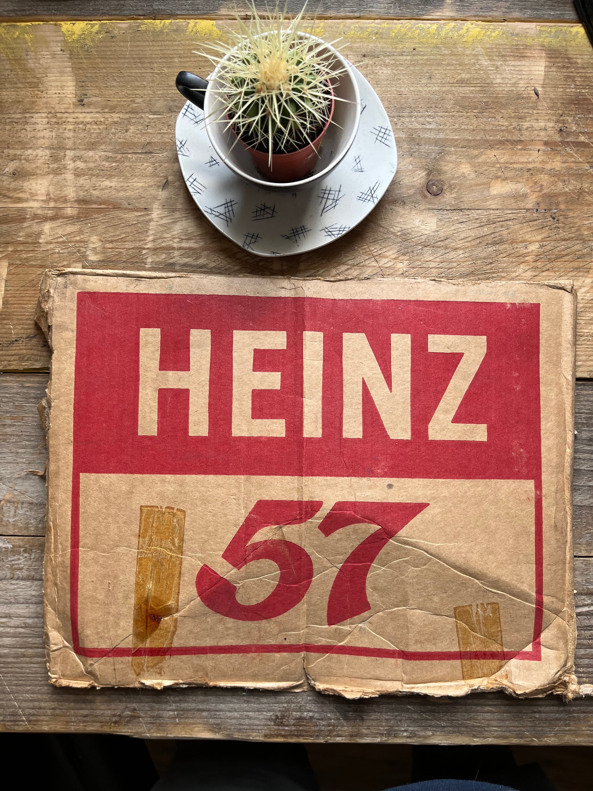 An original 1960s Heinz 57 packaging design. Now very unusual as most of these would have been disposed of.