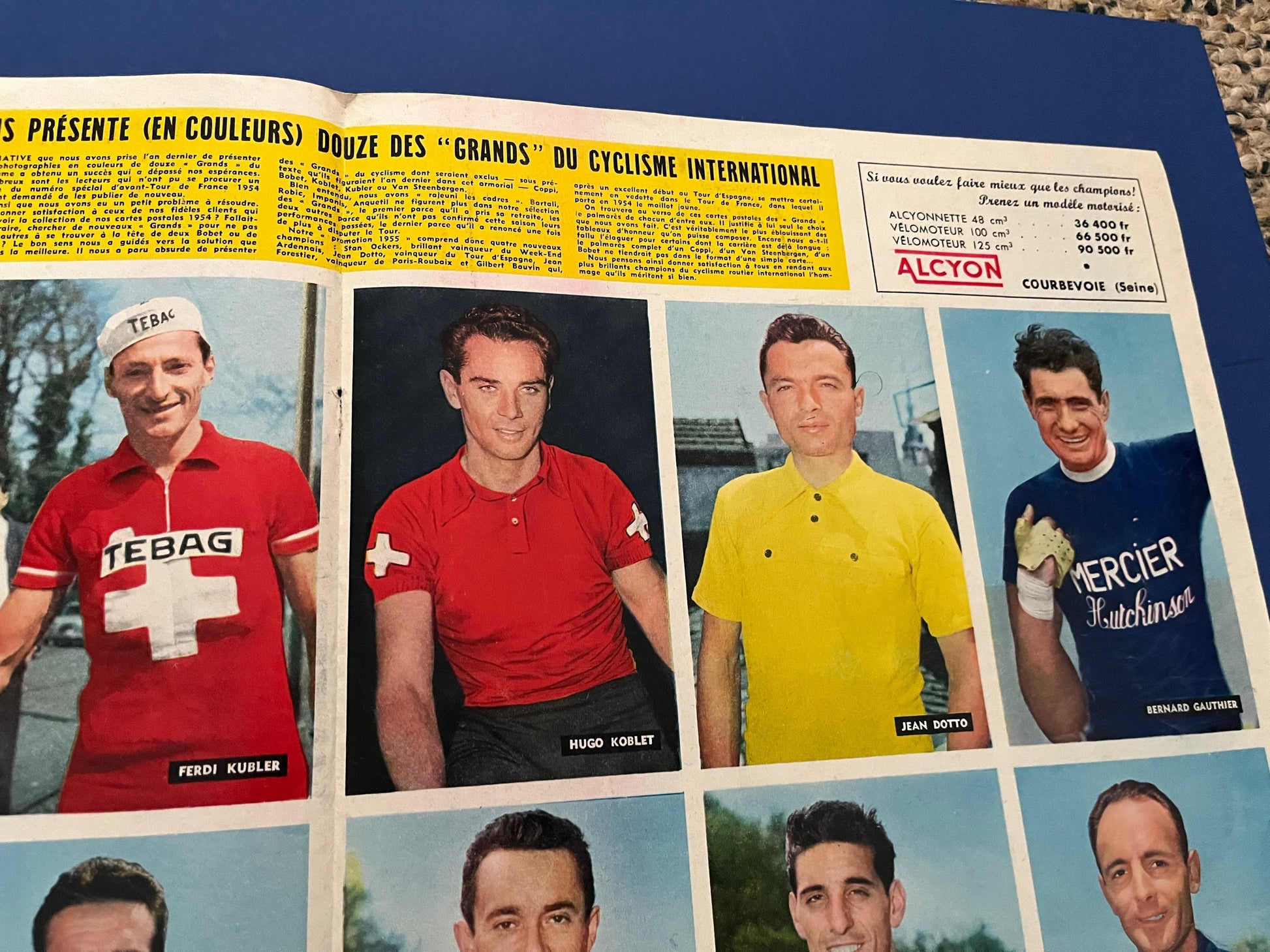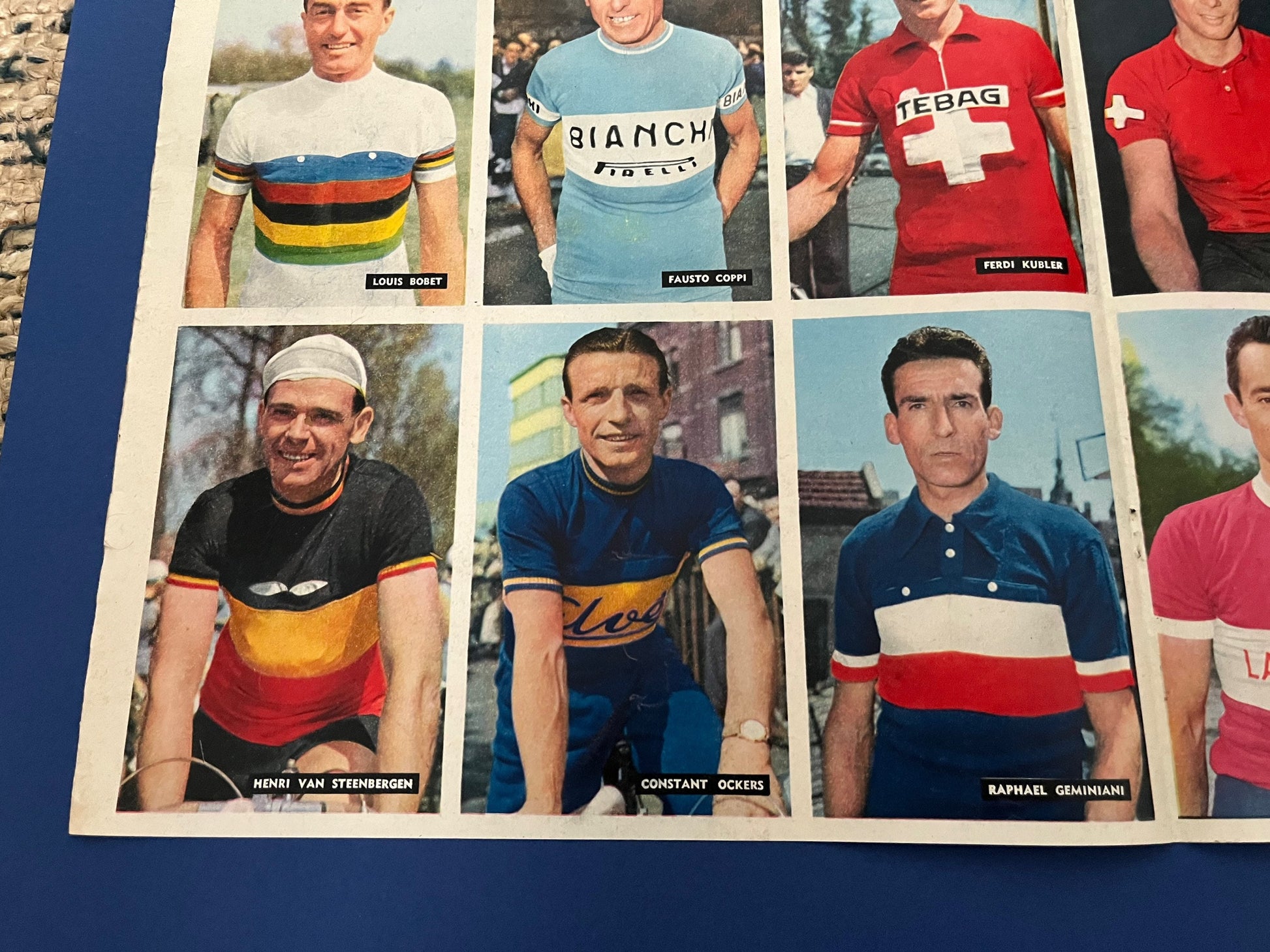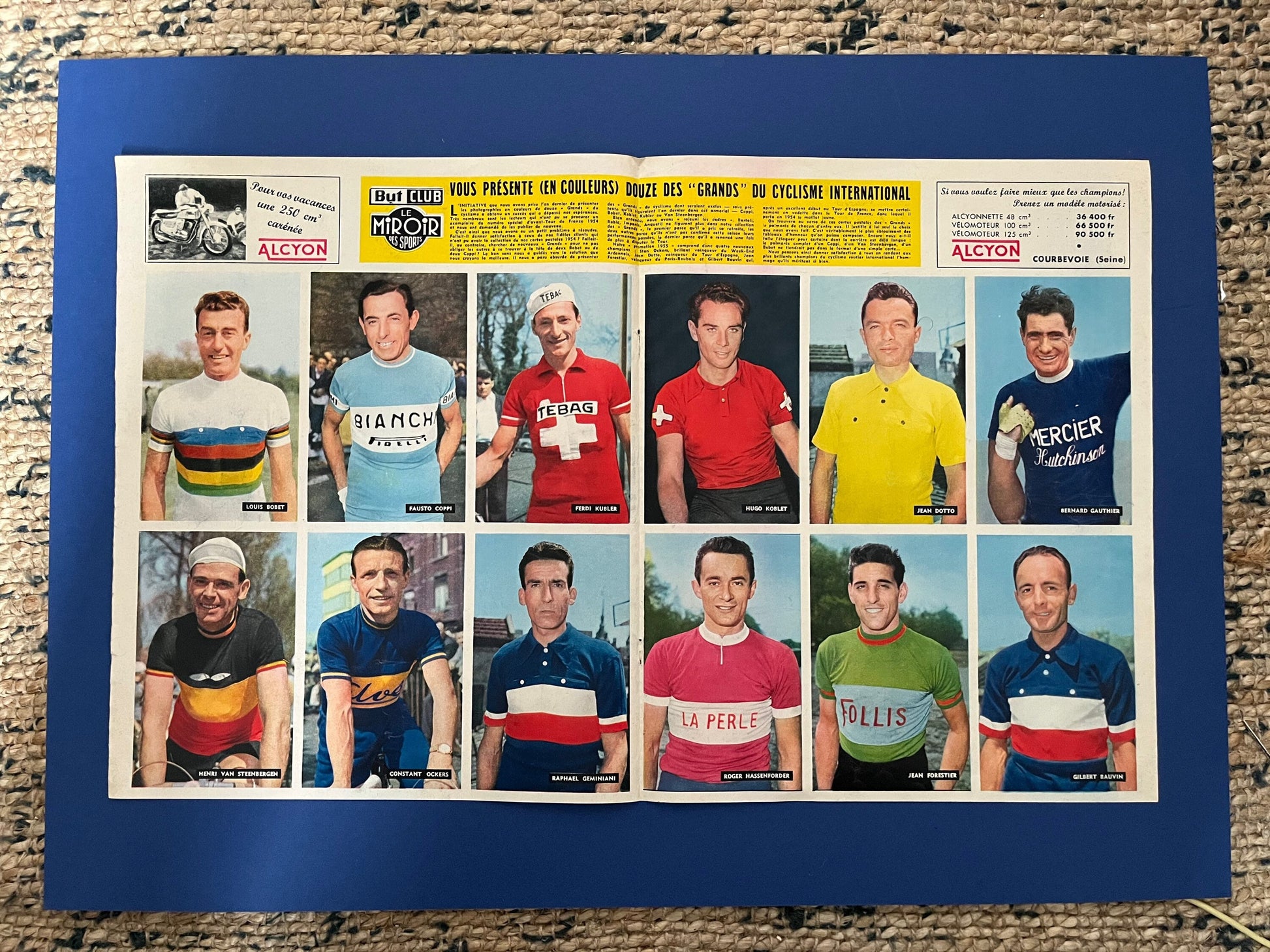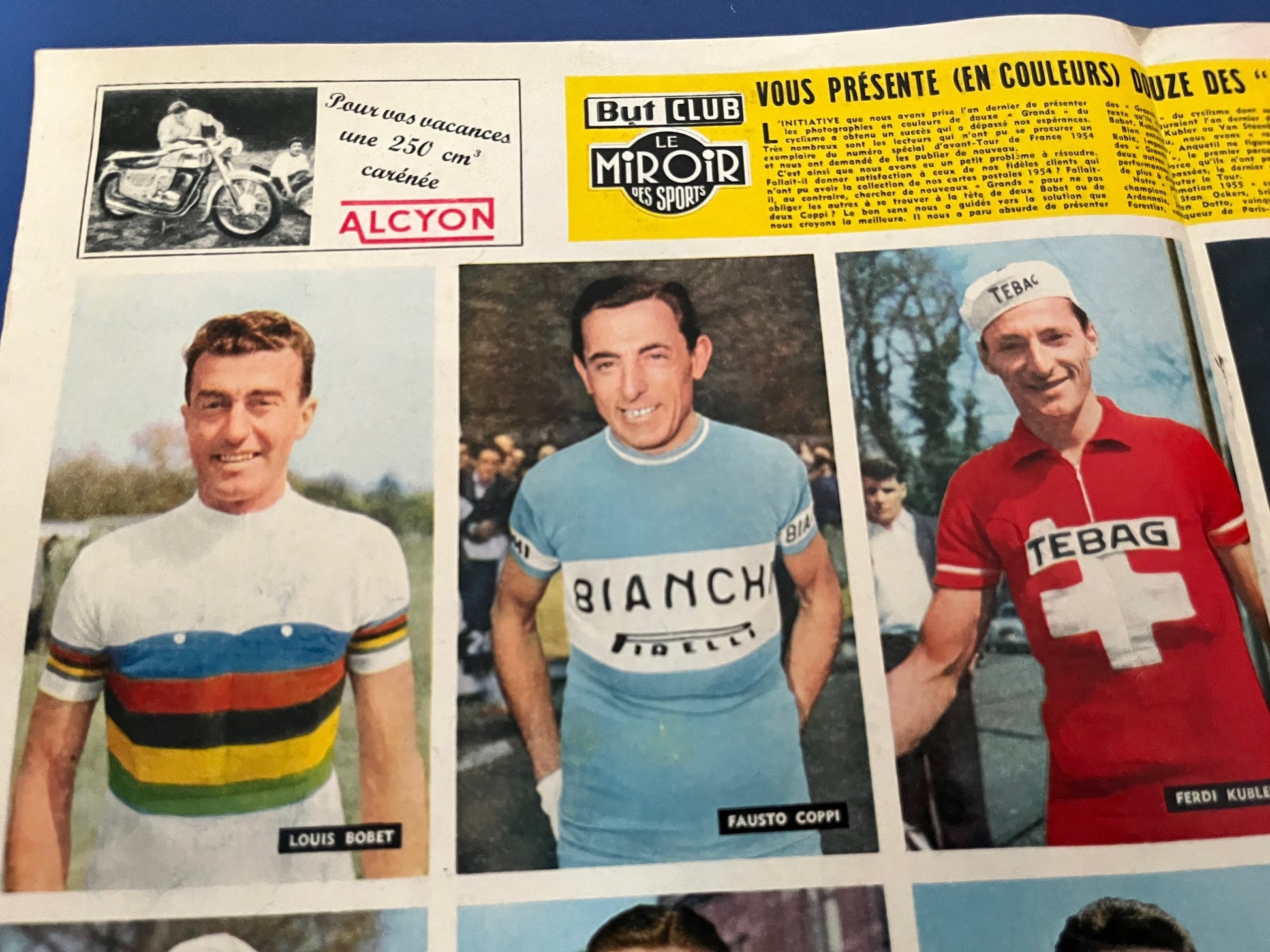 Very rare Original 1957 Italian cycling magazine print featuring the riders of the day including Fausto Coppi, Louis Bobet, Raphael Geminiani to name a few.
