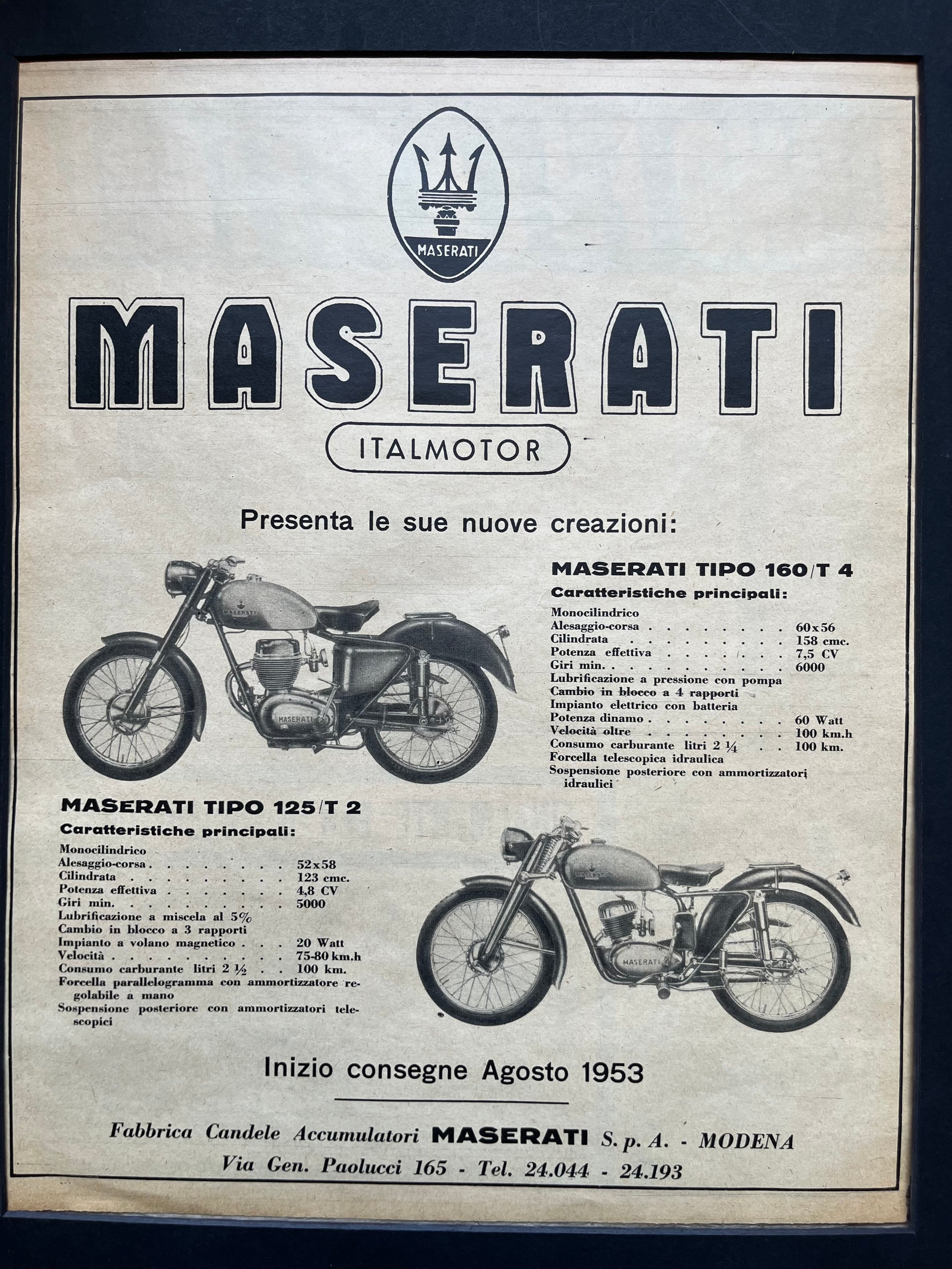 Maserati motorcycles advertising print 1950s