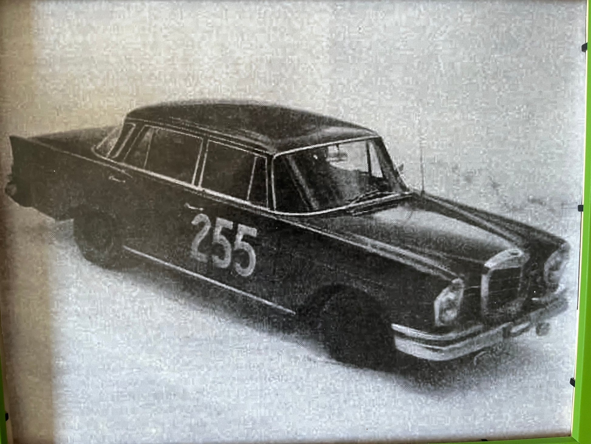 A stunning image of a snow covered classic Mercedes 190 Fintail in the 1963 Monte Carlo rally. This is a high res copy of an original photograph.