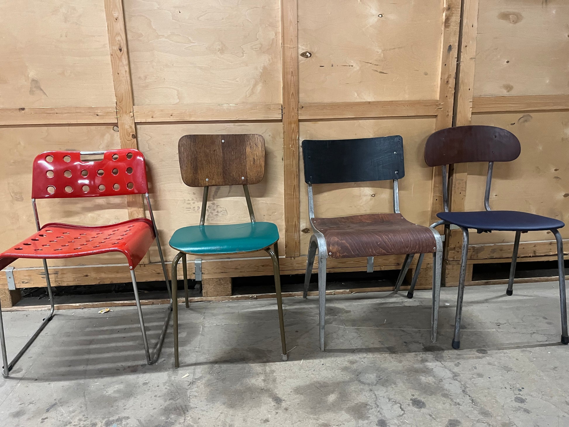 Mismatched set of midcentury stacking chairs OMK / Esavian /Danish
