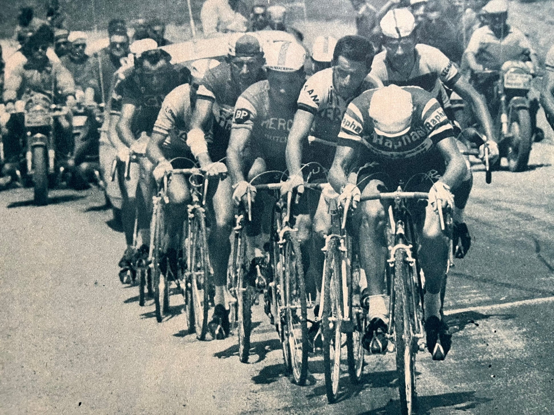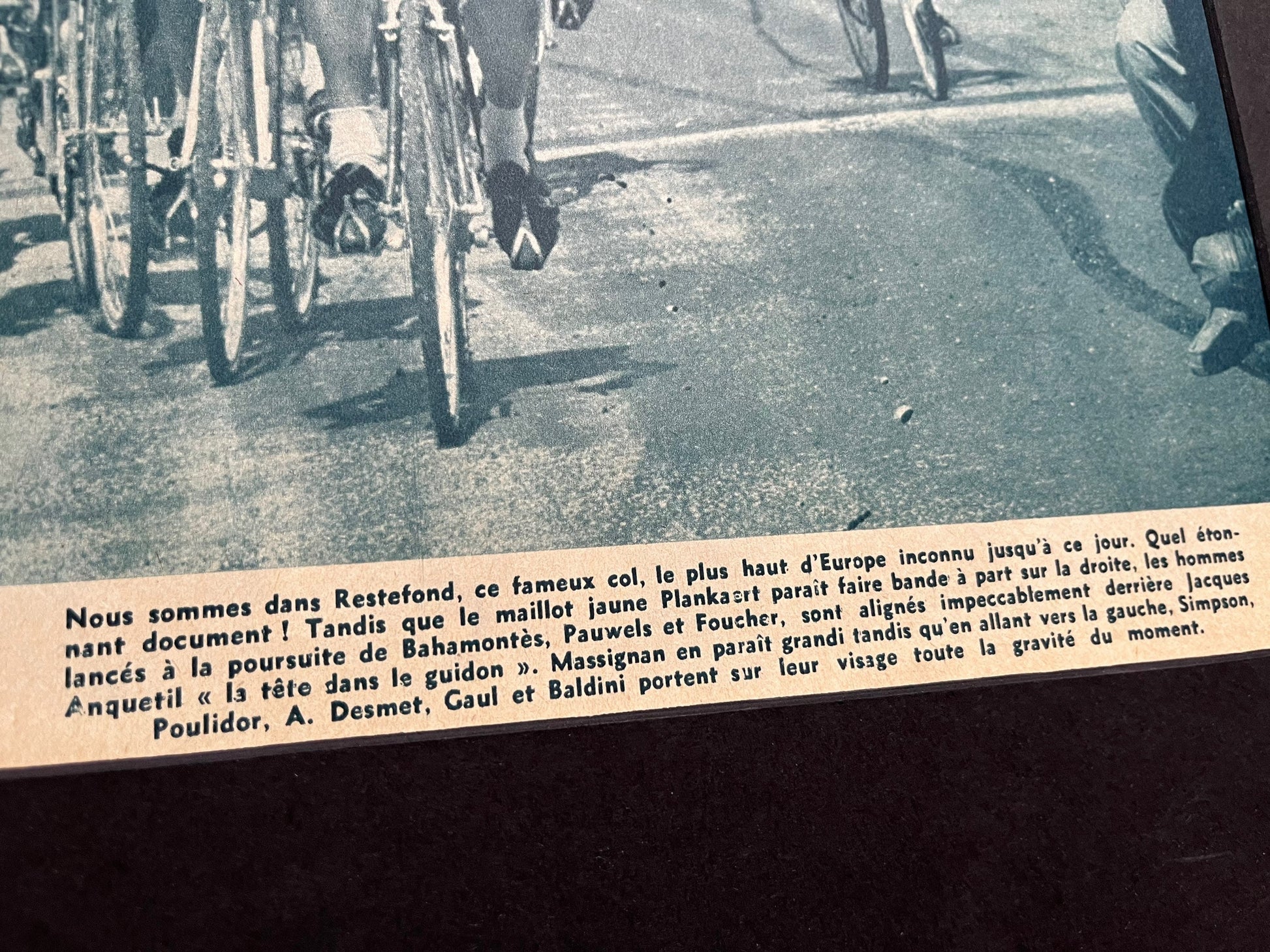 Iconic and very rare Original 1960 French cycling magazine print showing a peloton led by Jacques Anquetil