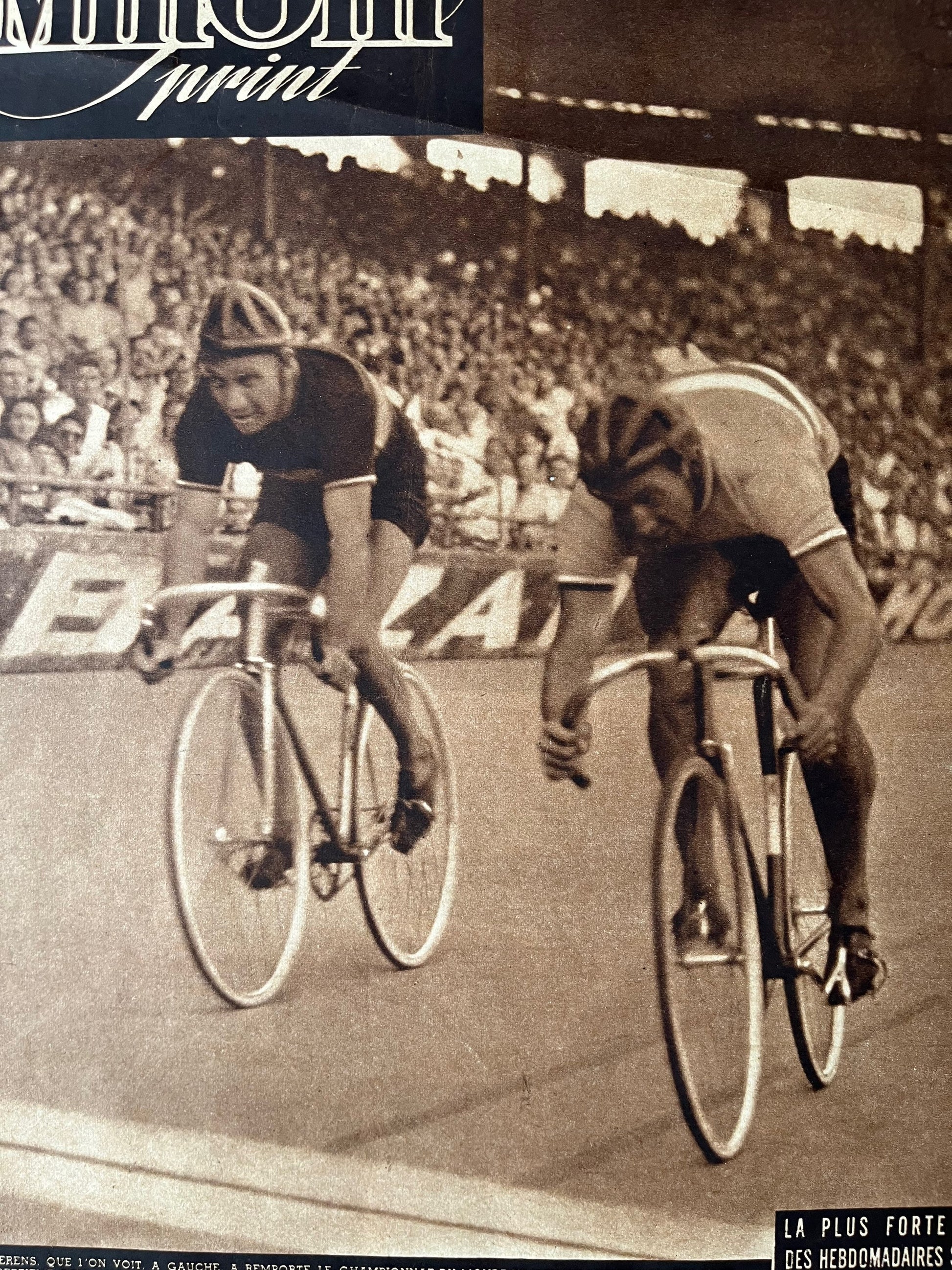 Vintage Track Cycling Print (French) - Pista Scherens/Gerardin Original 1947