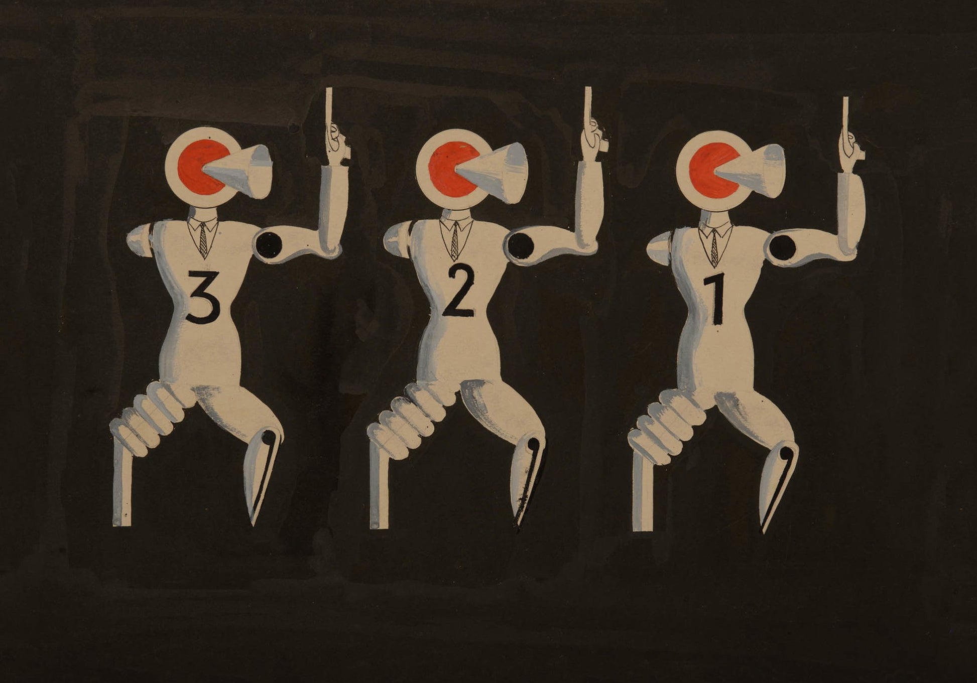 High quality reprint of “The robber ballet”by Oskar Schlemmer, (4 September 1888 – 13 April 1943). Schlemmer was a German painter, sculptor, designer and choreographer associated with the Bauhaus school.