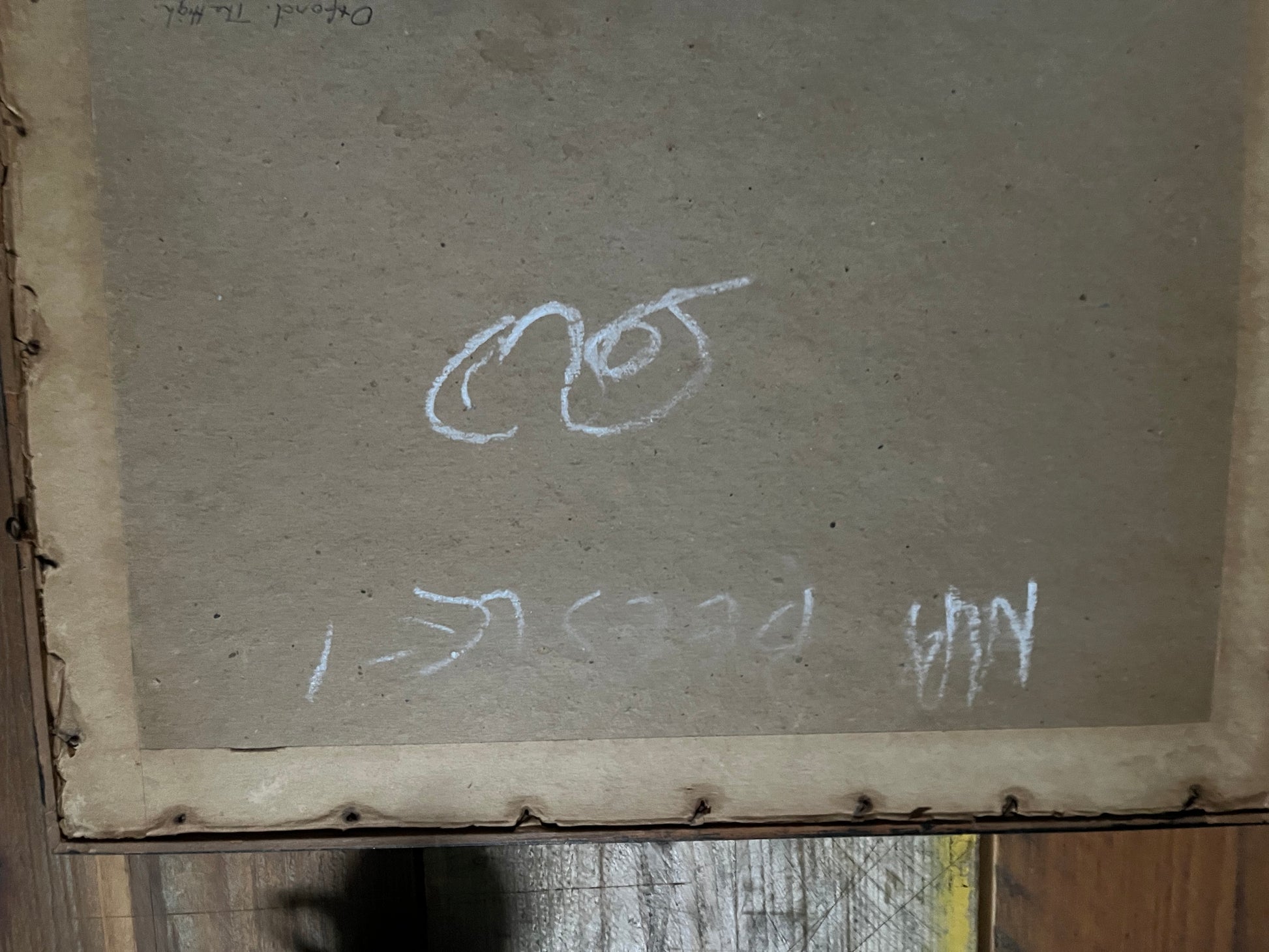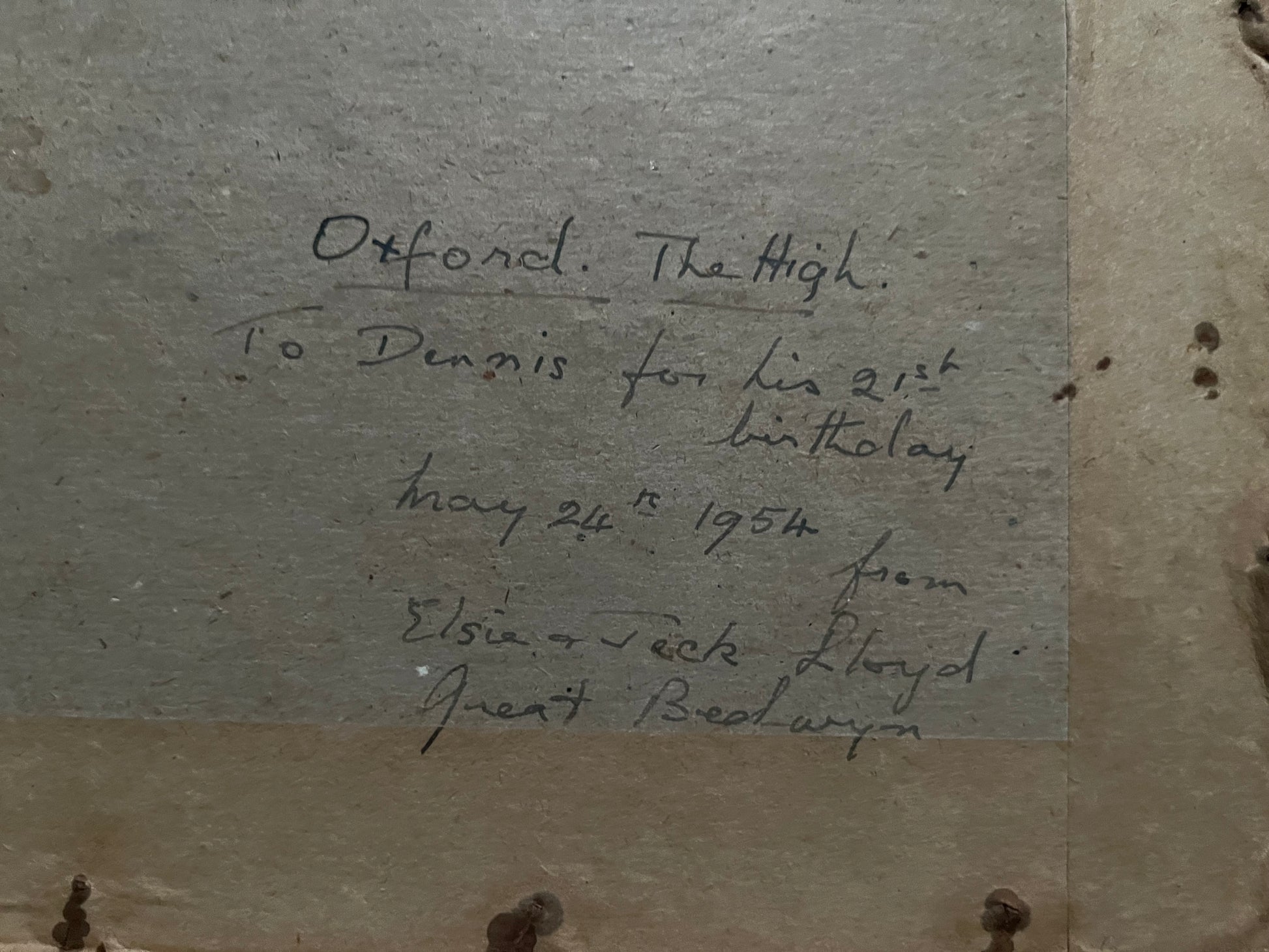 Showing street scene in Oxford. In original frame with a message on the back from its original owner..