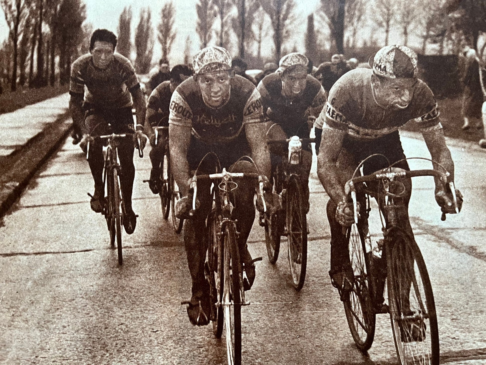 Vintage Cycling Print - Paris-Roubaix Race, Roger Rivière Rik van Looy, Original 1959