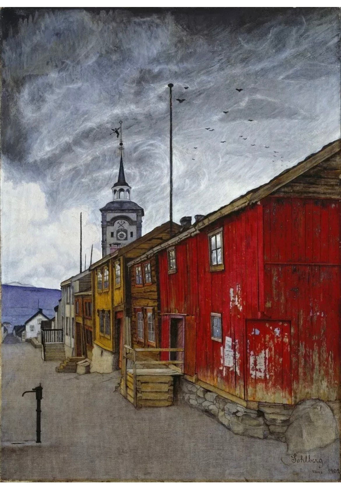 Vintage Scandi Artwork - Street in Roros Norway, Harald Sohlberg, c1902