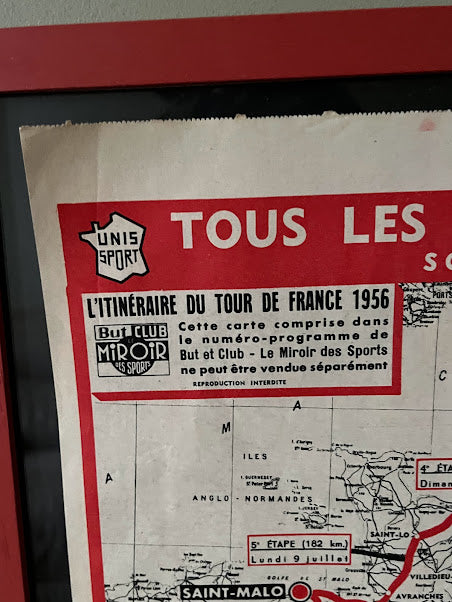 Originally issued as a supplement with an old french cycling magazine. These maps would have been supplied so that people could follow the tour at home or in bars and restaurant, where they were possibly displayed on walls.