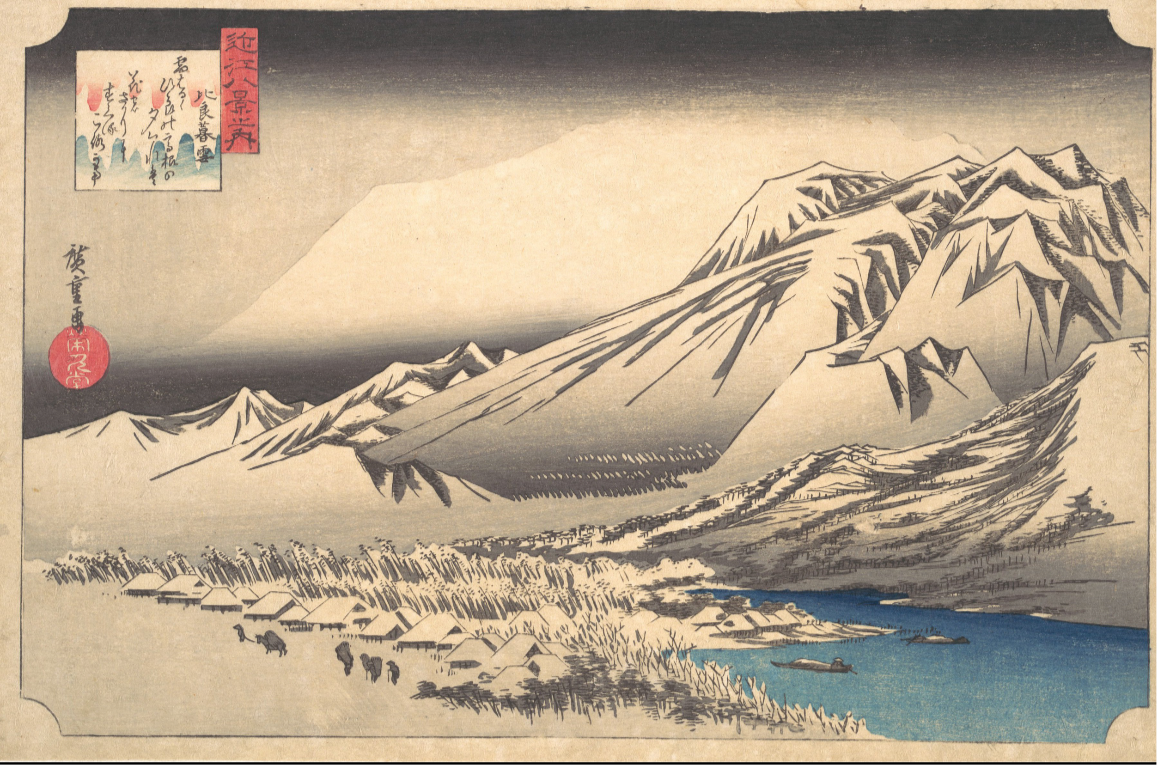 Utagawa Hiroshige - Evening snow on Mount Hira c1830s Japanese poster